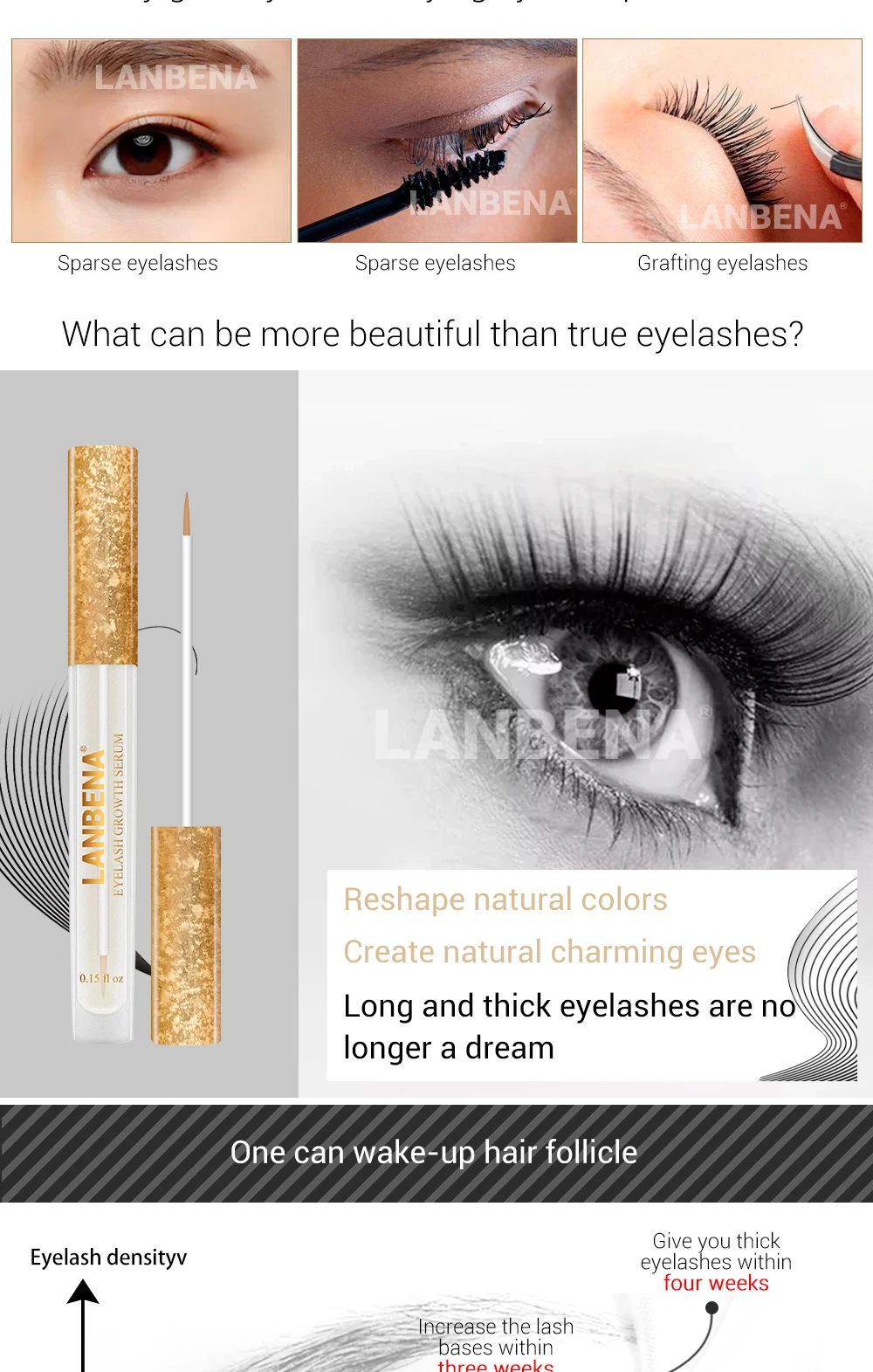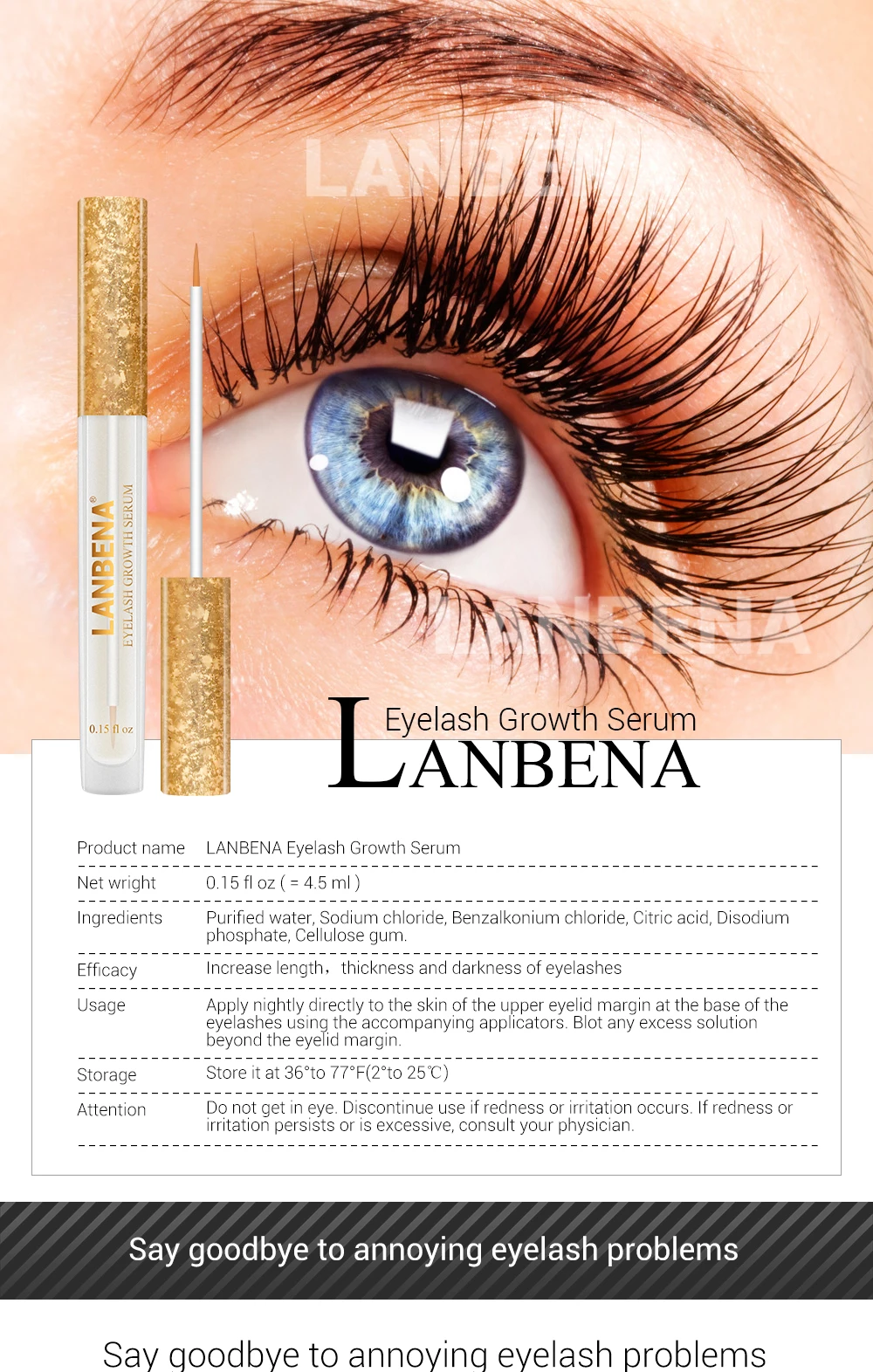 LANBENA Сыворотка для роста ресниц, усилитель ресниц, сыворотка для ресниц, более длинная, более толстая сыворотка для ресниц, сыворотка для бровей, усилитель для ухода за глазами, 4,5 мл