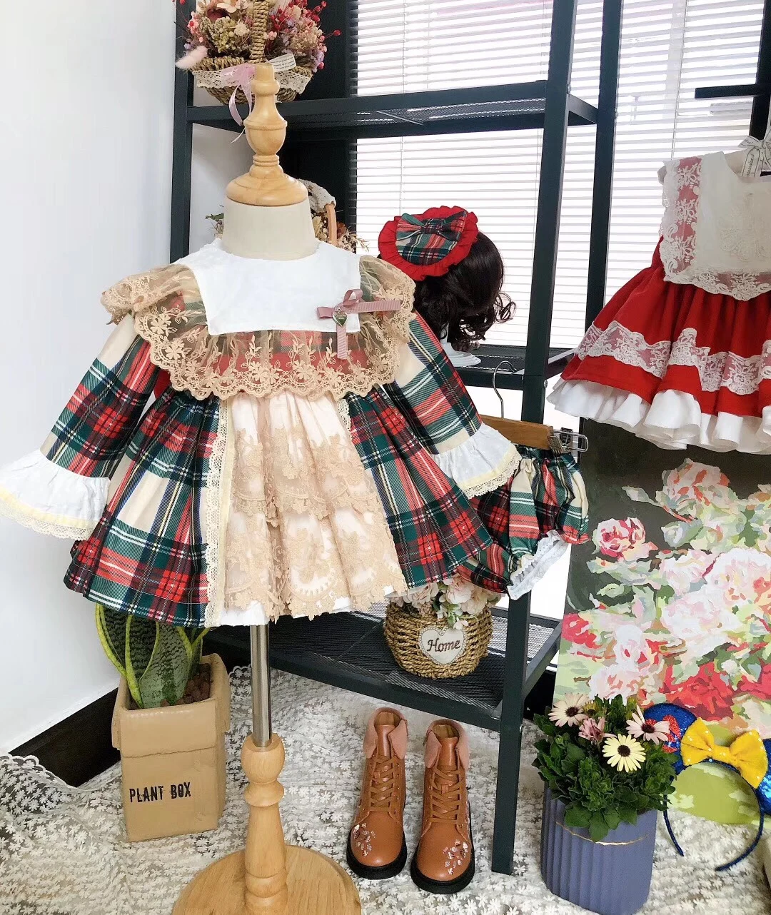 Платье в красную сетку для девочек, испанские вечерние платья принцессы для дня рождения, детская одежда, платье в английском стиле + шляпа + штаны, 3 предмета, рождественское платье для маленьких девочек, 2019US $40,00 /