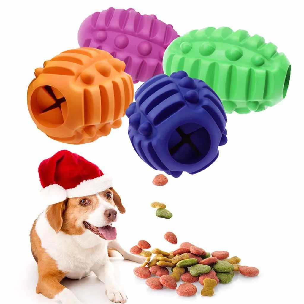 Pet Dog Chew Toy Food Dispenser Ball Bite-Resistant Natural Rubber Clean Teeth