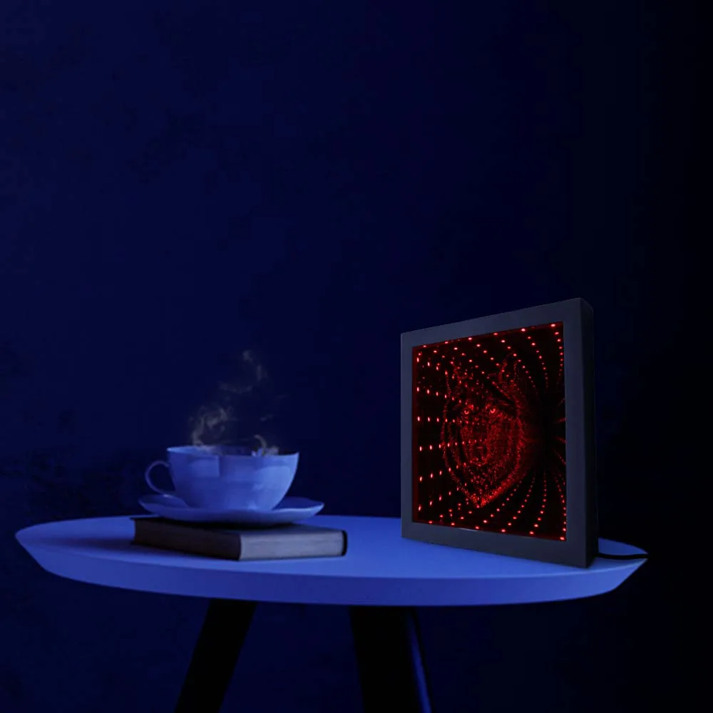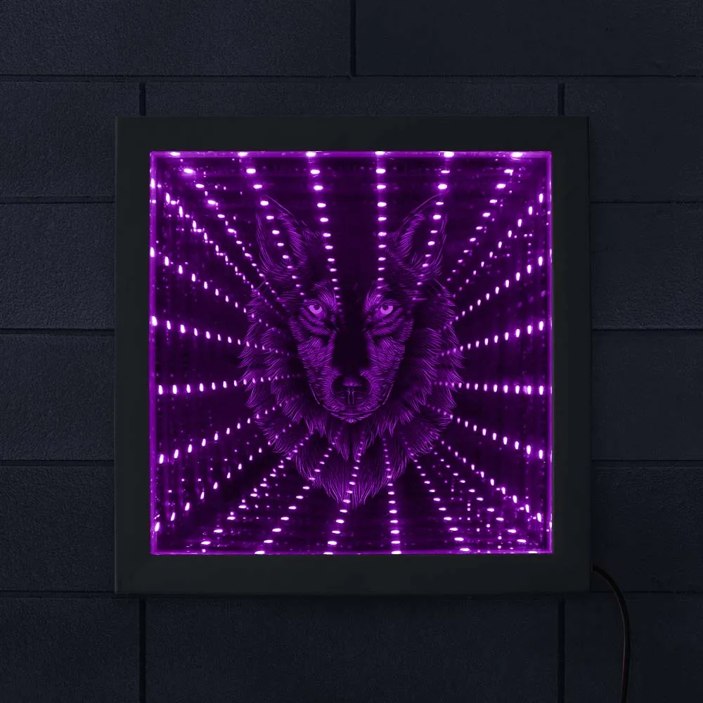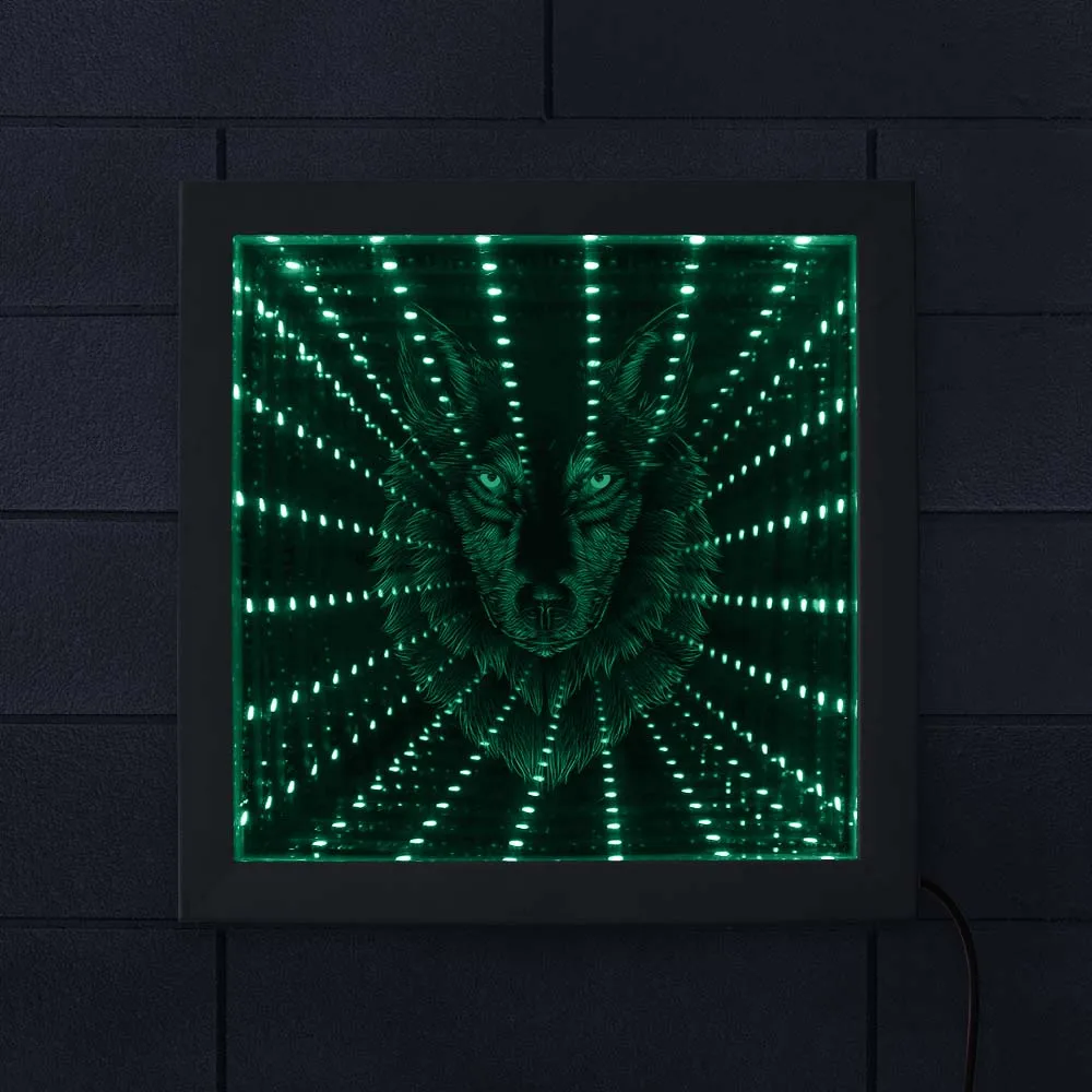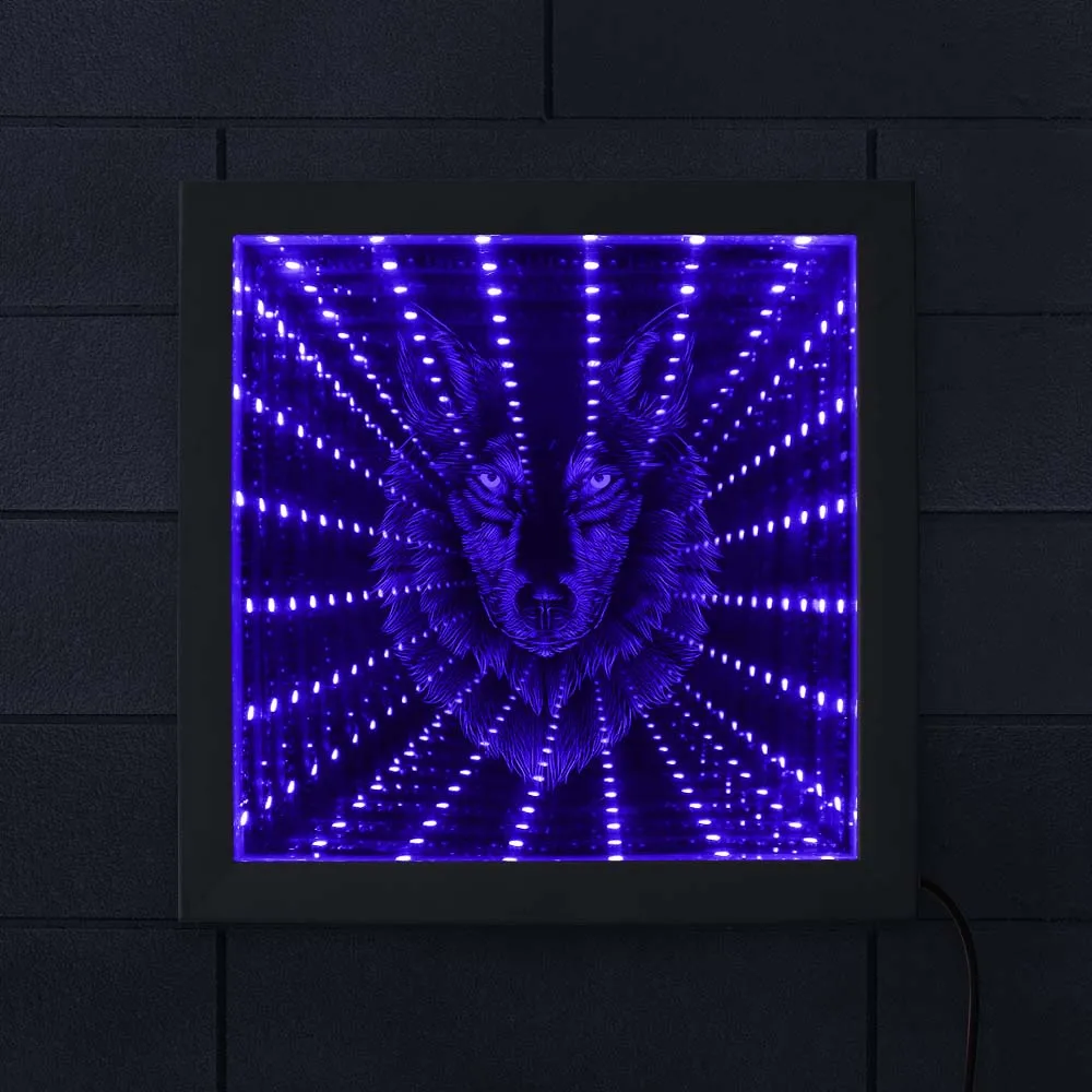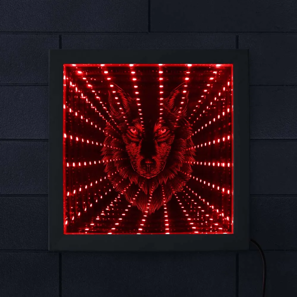 Волчья Голова светодиодный бесконечность зеркало в раме