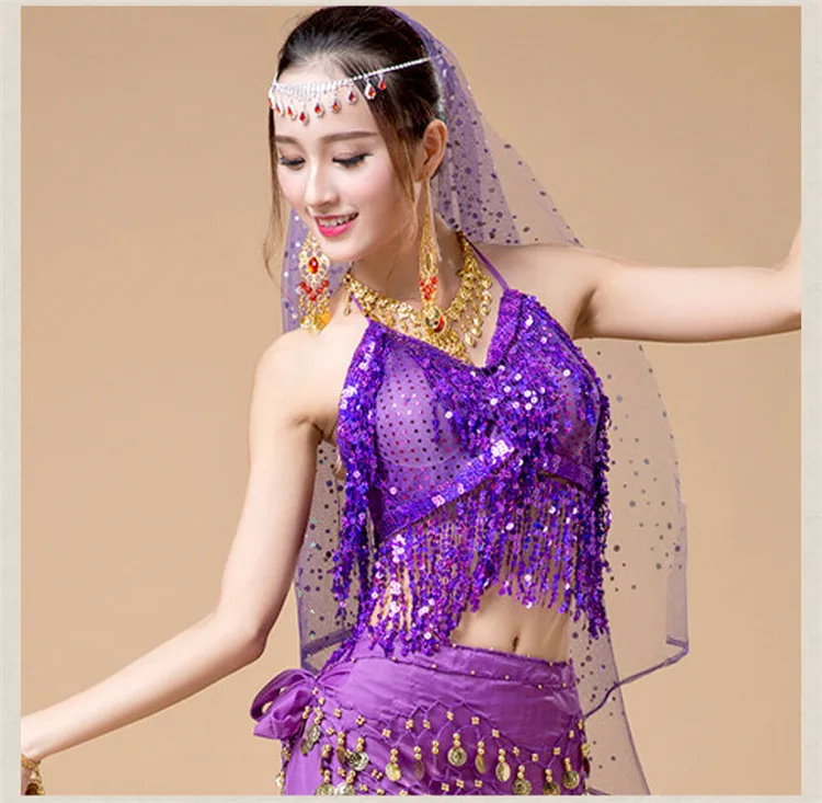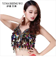 Женский модный бюстгальтер с лямкой на шее, топ с блестками и кисточками, костюм для латинского танца живота, вечерние Клубные праздничные сексуальные топы для танцев, Новинка