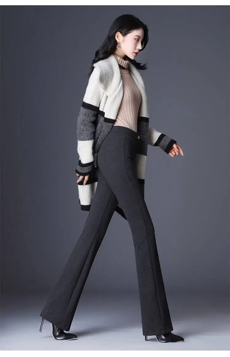#2001 осенние зимние эластичные брюки с высокой талией расклешенные для женщин
