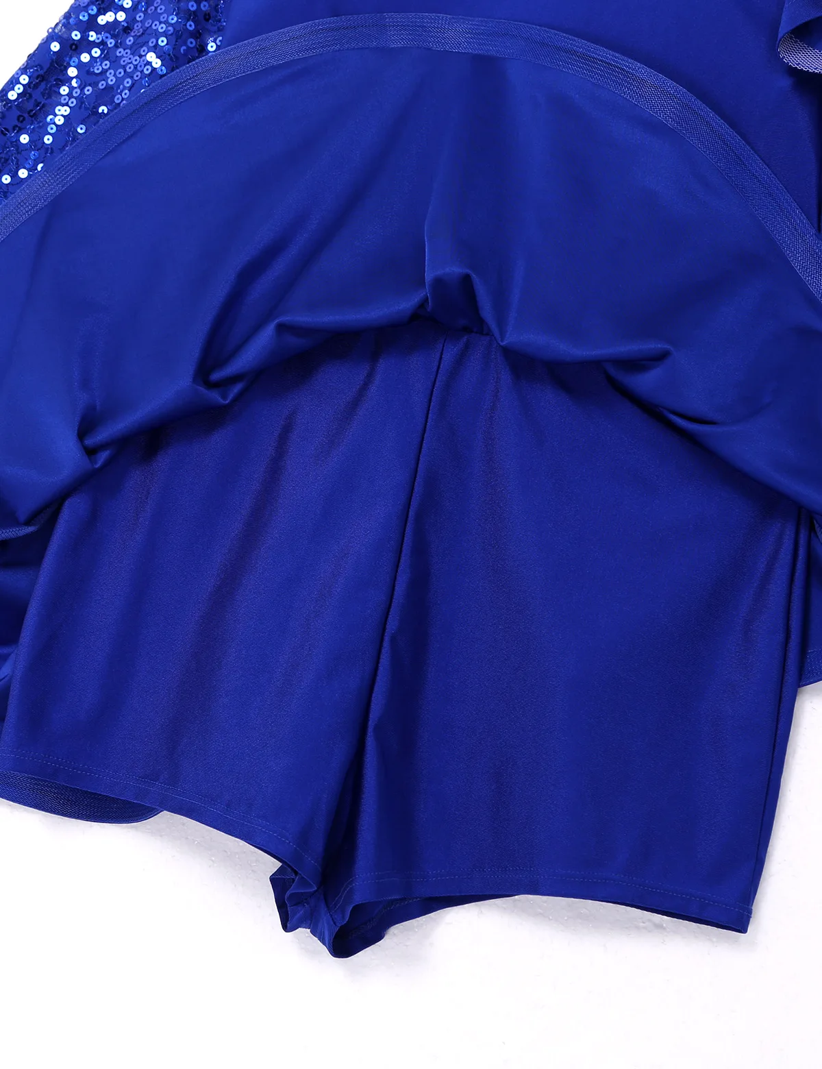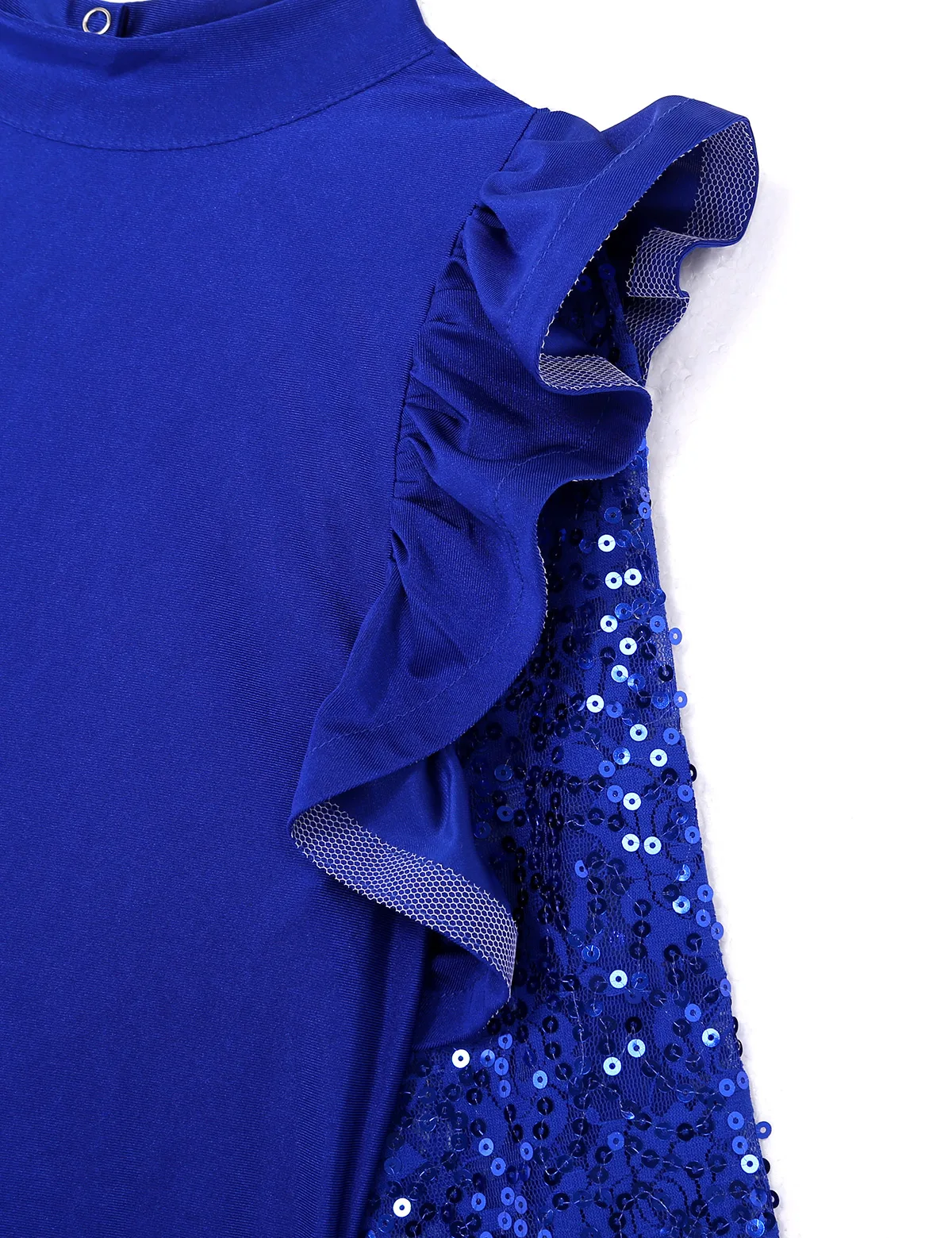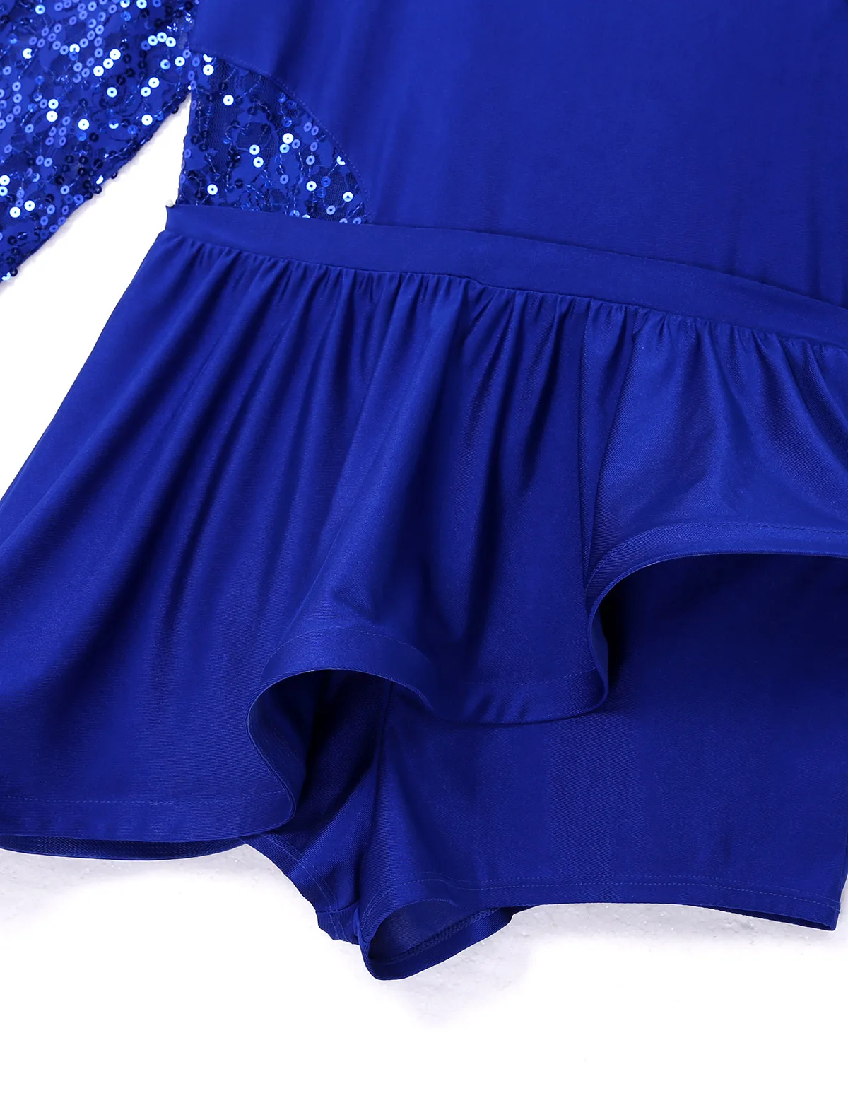 Ложная горловина, кружевные Длинные рукава с блестками и гофрированное левое плечо, открытая спина, придайте вам элегантный вид.
