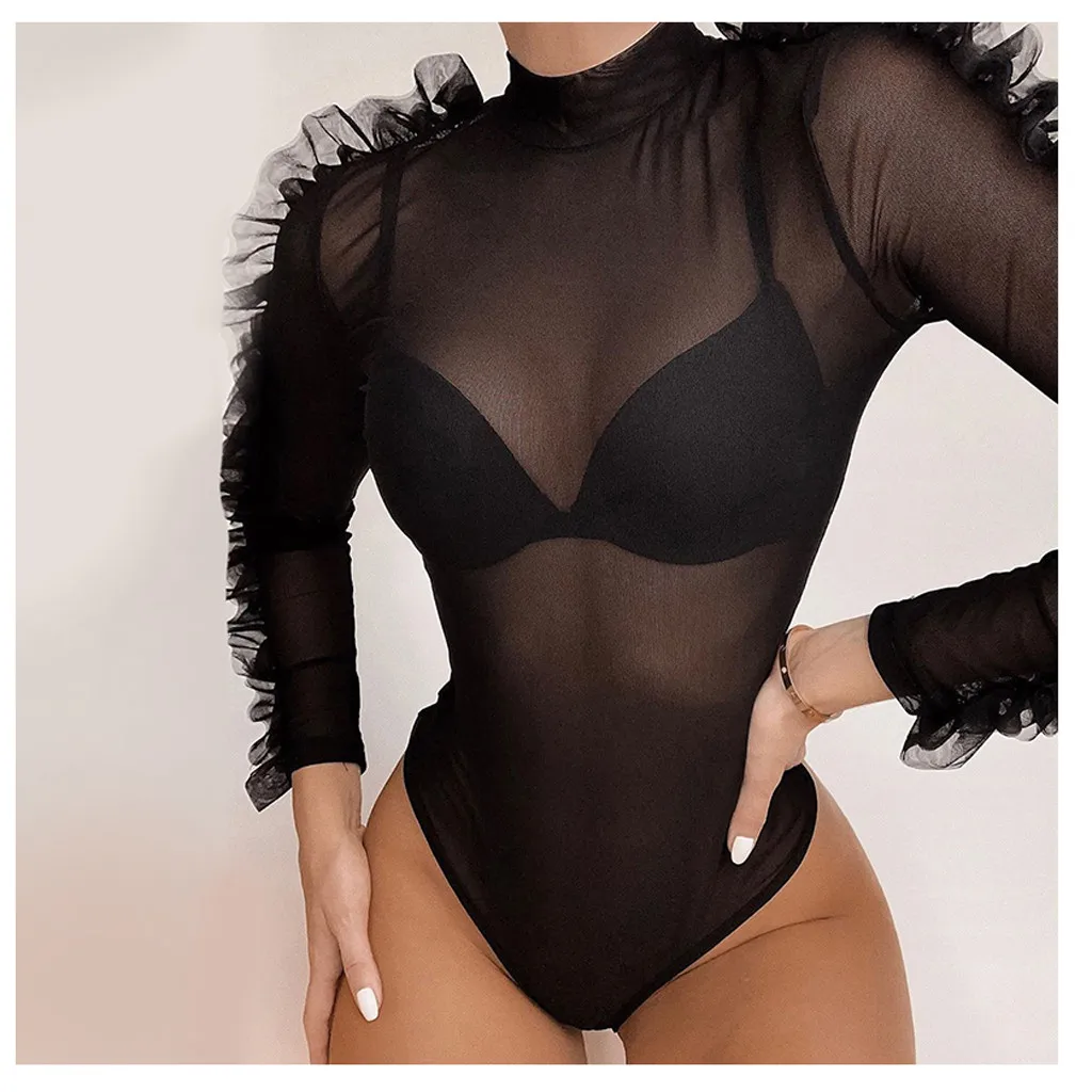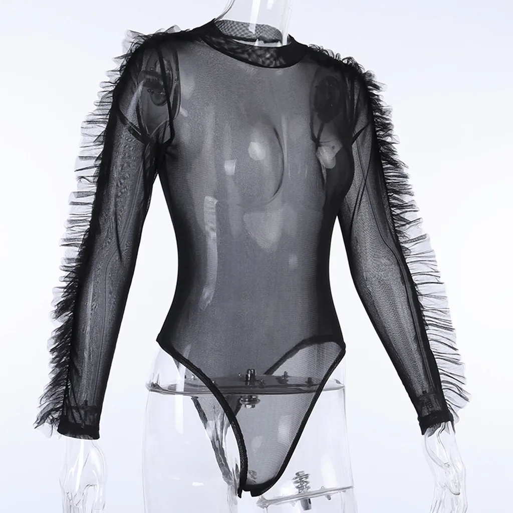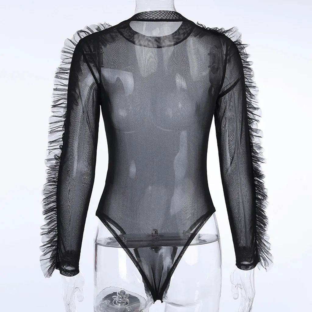 Модный женский комбинезон с воротником-хомутом и оборками, сексуальный сетчатый тонкий комбинезонКомбинезон