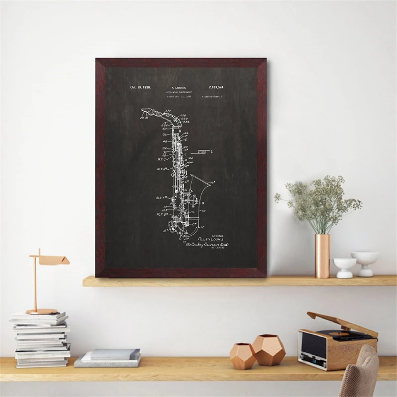 Музыкальный инструмент, лакированные принты, подарок, саксофон, музыкальный настенный художественный холст, картины, украшение для дома, подарки на день рождения