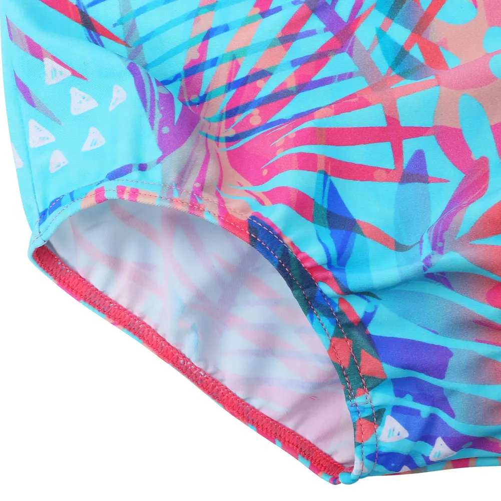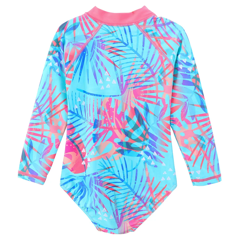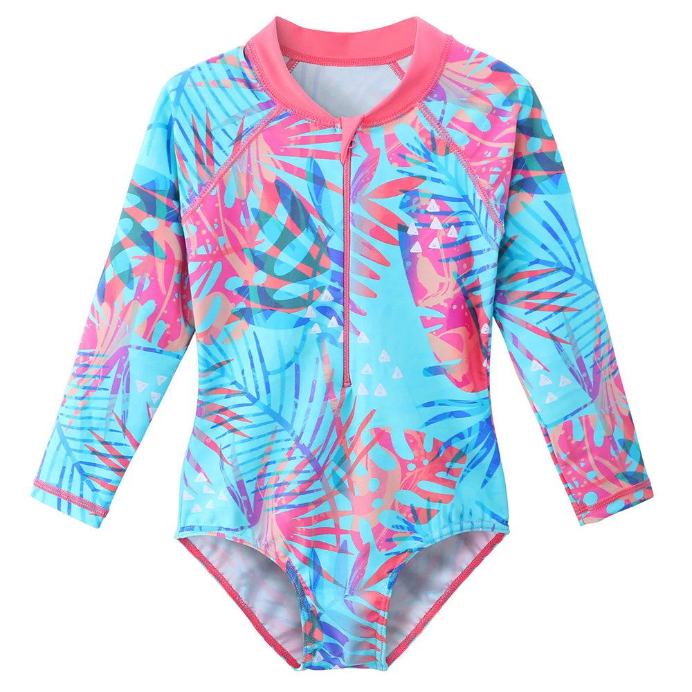 BAOHULU/купальник для девочки с длинными рукавами, детский купальник для девочек, Цельный купальник с синим принтом листьев, пляжная одежда для детей 4-11 лет