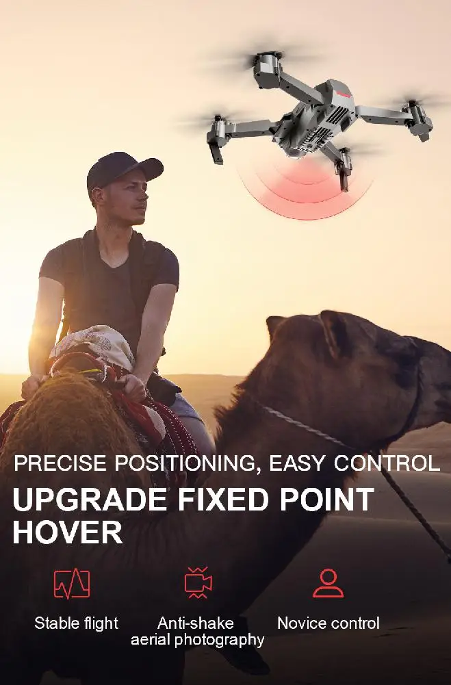 Вверх/вниз, поворот влево/вправо, вперед/назад, боковой полет, Wi-Fi соединение, двойная камера, режим следования, оптическое положение потока, возврат одной кнопкой, один ключ для land/take off, режим траектории полета, переключение скорости, видео жестов, фото жестов, производство мВ, 3 режима управления, включая режим джойстика, Классический режим и режим обнаружения движения, поиск дрона.