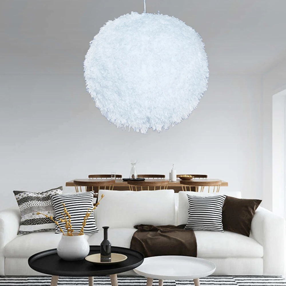 Features: 1.Suitable for 8-15 square meter space,such as bedroom,living room,bathroom,dining room and so on. 2.White shell+warm light/white shell+white light/pink shell+warm light/pink shell+white light 4 types available,stylish and beautiful,eye-catching. 3.Made of Hardware+Artificial Feather(Cloth) material,unique and charming,cool and chic,textured and elegant. 4.Using chrome plating,sanding,weaving process,fine workmanship and delicate,solid and durable in use,quality assurance. 5.The shell is shrinkable,hardware base with wonderful load-bearing capacity,safe and reliable to use. Specification: Size:Diameter:20cm Color:White shell+warm light/white shell+white light/pink shell+warm light/pink shell+white light Shape:Ball Weight:525g Quantity:1pc Connector:E27 Material:Hardware+Artificial Feather(Cloth) Package includes: 1*Chandelier