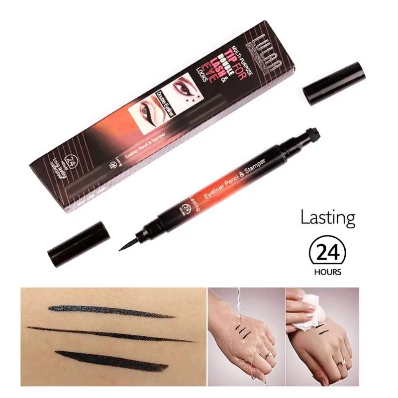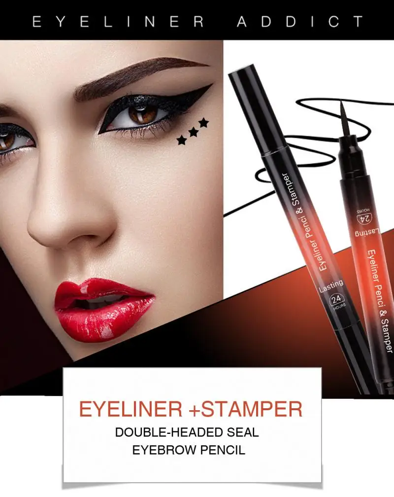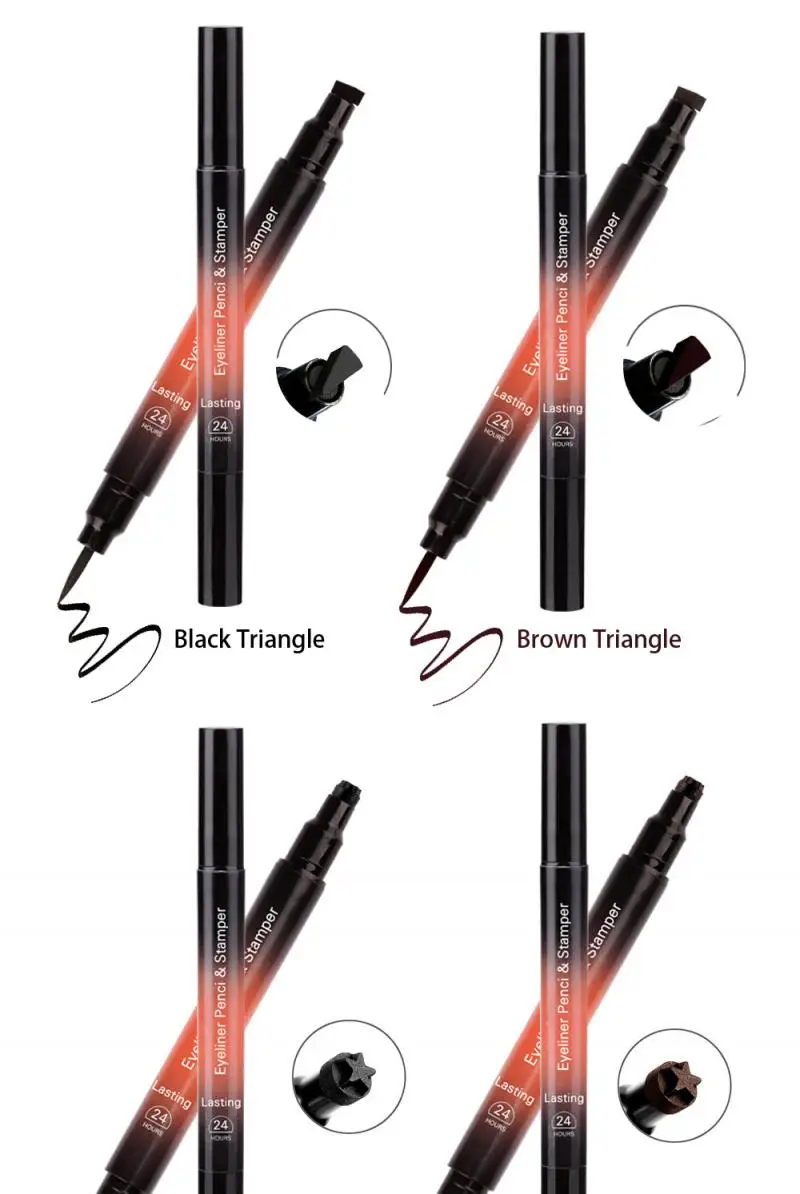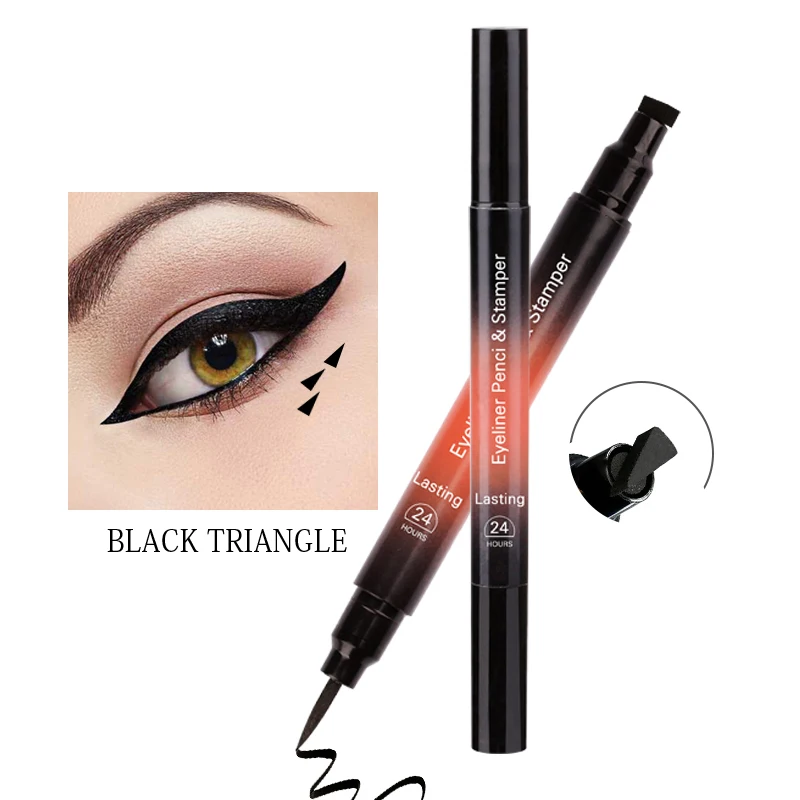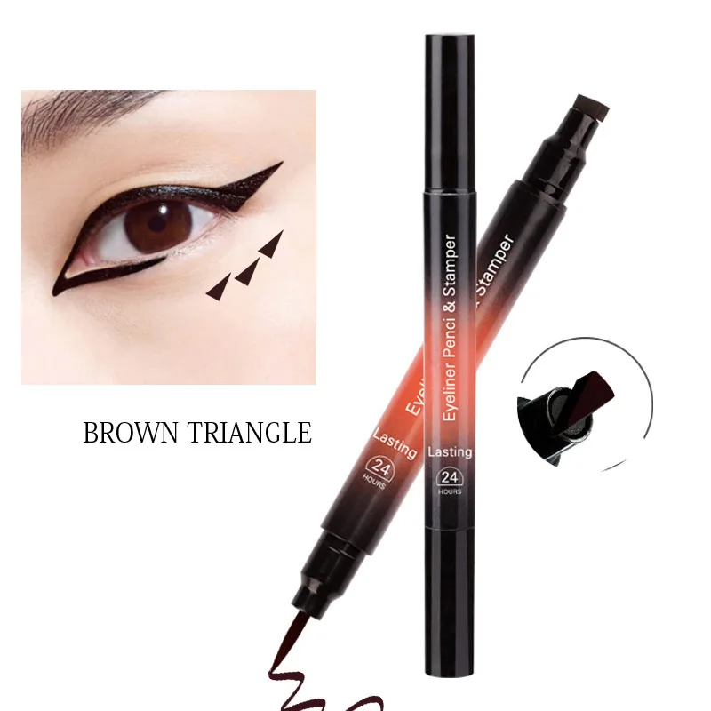1 шт., 2 в 1, треугольная матовая подводка для глаз, карандаш, крылышко, печать, подводка для глаз, штамп, черный, коричневый, жидкая подводка для глаз, водостойкая, макияж для глаз, TSLM1