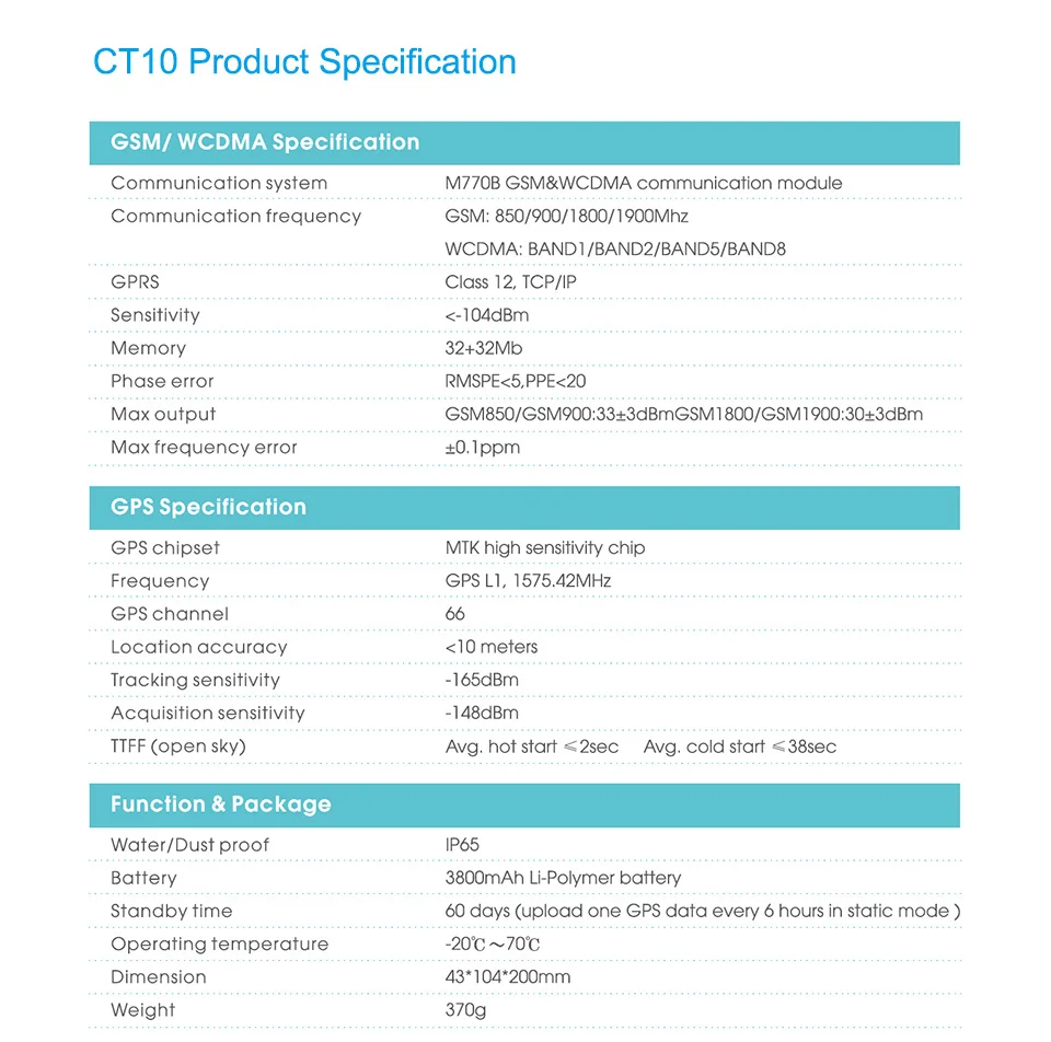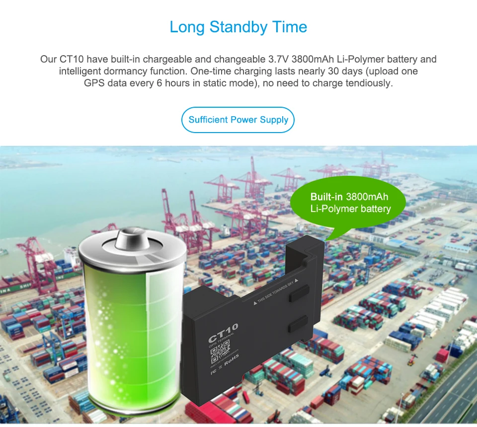 Предназначен для транспортировки контейнеров и доставки грузов, 3G GPS трекер CT10 является полезным решением безопасности, обеспечивающим повышенную видимость и безопасность транзитных активов по всему миру. Используя технологию WCDMA, все новые экономичные, долговечные GPS устройства слежения способны предоставить точную информацию о местонахождении контейнеров: над океаном и над сушей бесшовным и эффективным способом. CT10 с 4 видами переключения режимов: автоматическое переключение, статический режим, наземный транспорт, режим доставки.