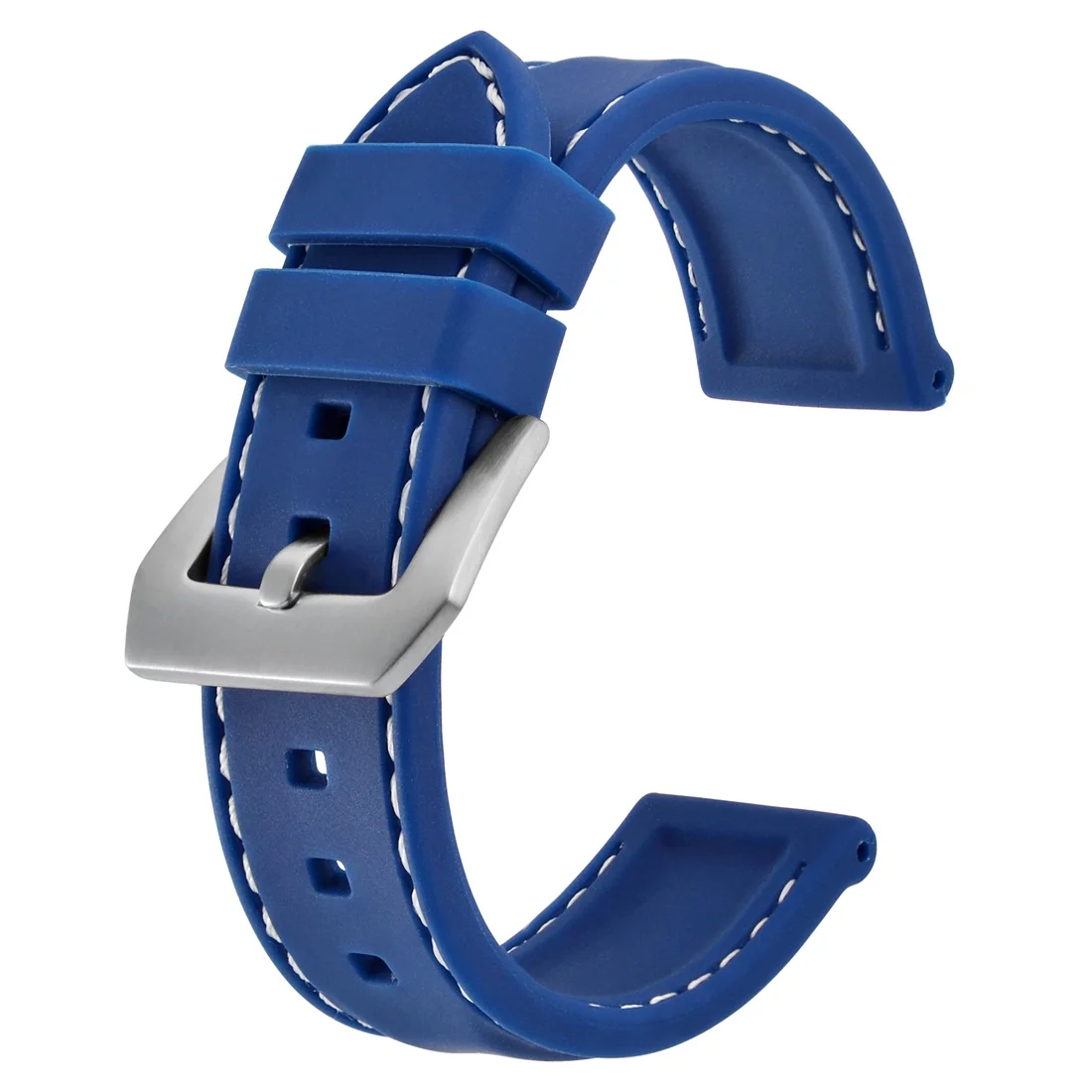 Материал: высококачественный мягкий силикон Пряжка: Пряжка из нержавеющей стали Ширина ремешка: 18 мм, 20 мм, 22 мм, 24 мм Толщина ремешка: 4-6 мм Цвет ремешка: черный, синий, красный, серый