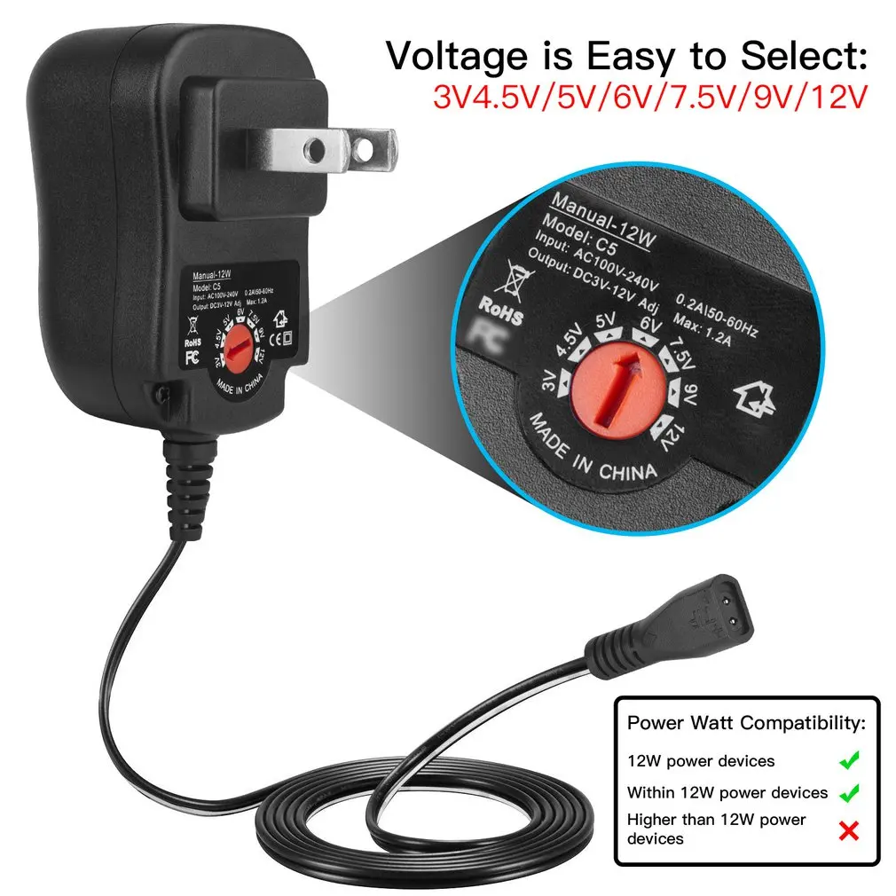 Выход: постоянный ток: 3 в 4,5 В 5 в 6 в 7,5 В 9 в 12 В