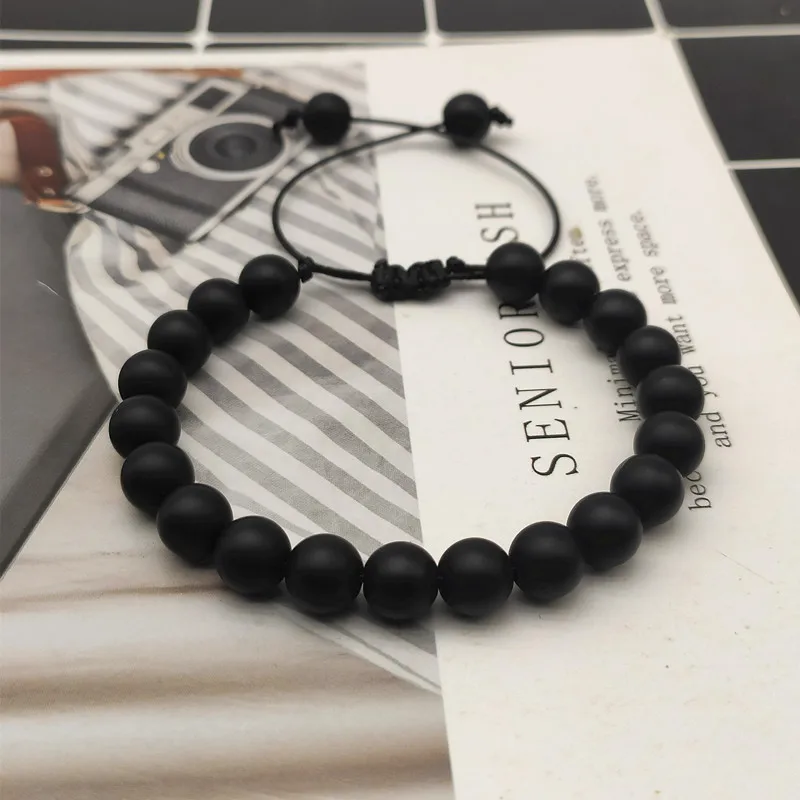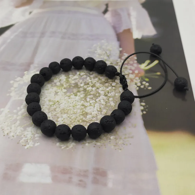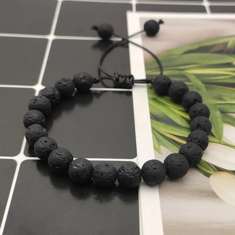 Круглый Черный плетеный браслет из лавы, мужской браслет с бусинами, регулируемый, 6 мм, 8 мм, модный браслет, Прямая поставка Материал: каменные бусы Размеры: Регулируемый Использование: подарок для друга Размер бусин: 4 мм 6 мм