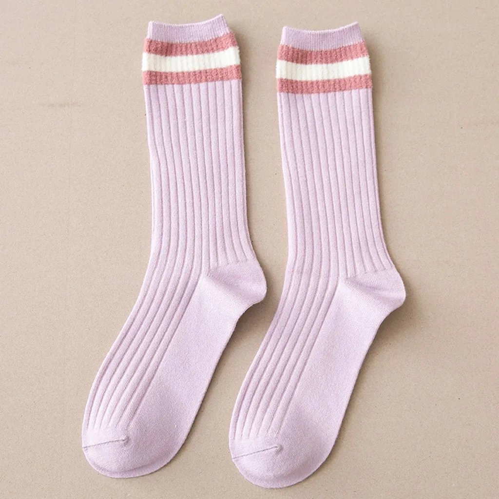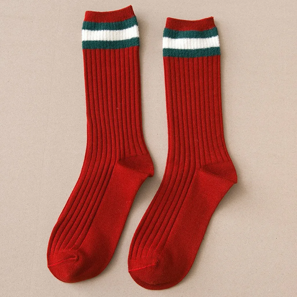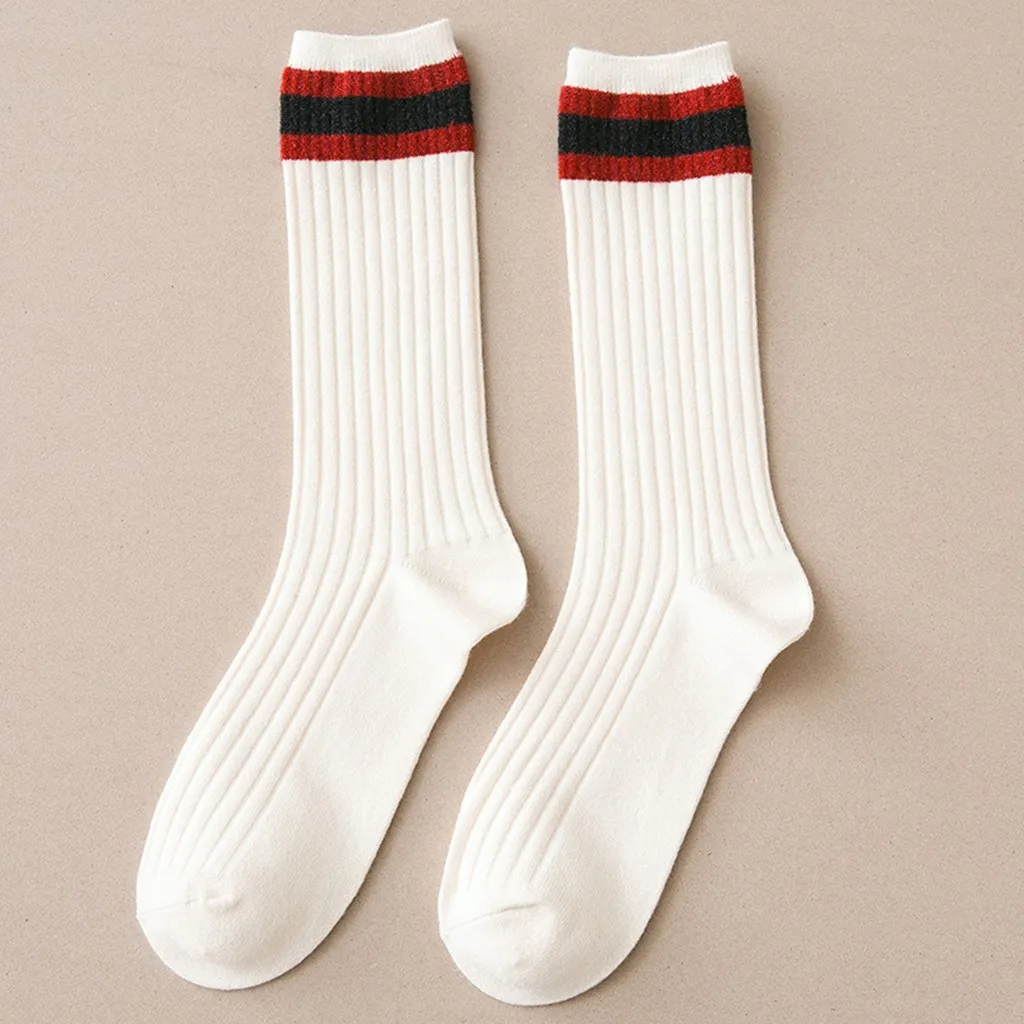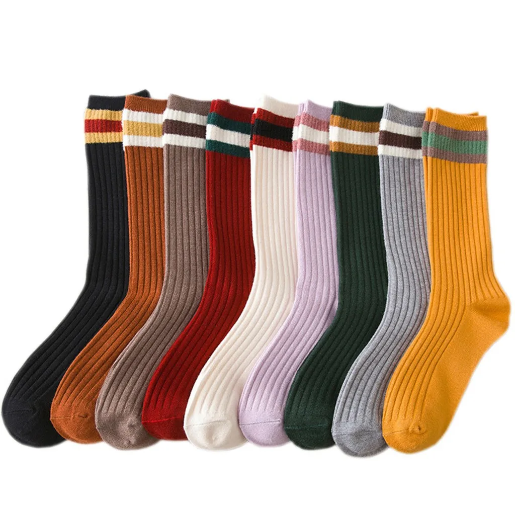 1 пара женские хлопчатобумажные носки с полосками женские зимние носки