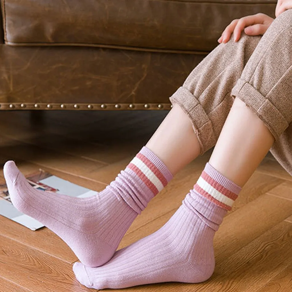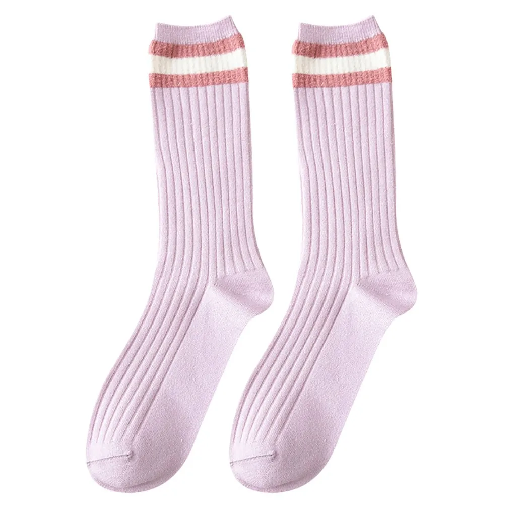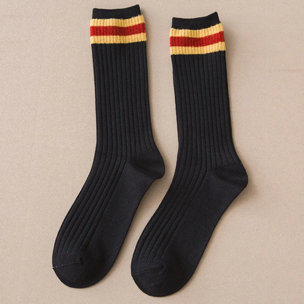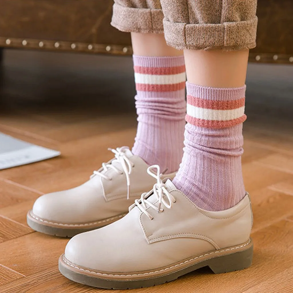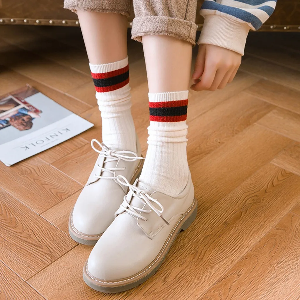 1 пара женские хлопчатобумажные носки с полосками женские зимние носки