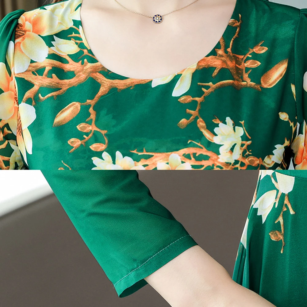 Особенности: Цветочный принт, развевающейся юбкой, обхват талии в обтяжку, размера плюс