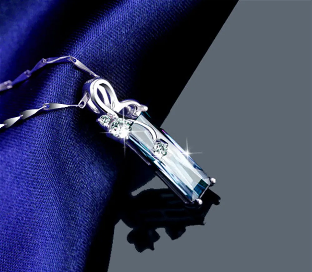 1. Голубой аквамарин, драгоценные камни, Кристальный кулон ожерелье для женщин femme, с AAA циркониевые бриллианты инкрустированные, модные, элегантные и романтичные. 2. Три раза с покрытием 18-ти каратным белым золотом, серебро, прочный и долговечный, здоровый материал. 3. Отличное качество изготовления, высокая полировка, гладкая, удобная и удобная в носке. Идеальный кулон ожерелья для женщин. 4. Прекрасный Подарок на годовщину, день рождения, День Святого Валентина, День благодарения и Рождество! 5. Также приятно носить на работе, вечерние или на каникулах 6. Высококачественный ювелирный бархатный Подарочный пакет входит в комплект 7. Мы отправим все заказы в течение 5 рабочих дней. 8. Режим транспортировки: Aliexpress Стандартная доставка, безопасная и быстрая. Посылка включает в себя Набор подвесок и подходящего ожерелья. Длина ожерелья: около 45 см