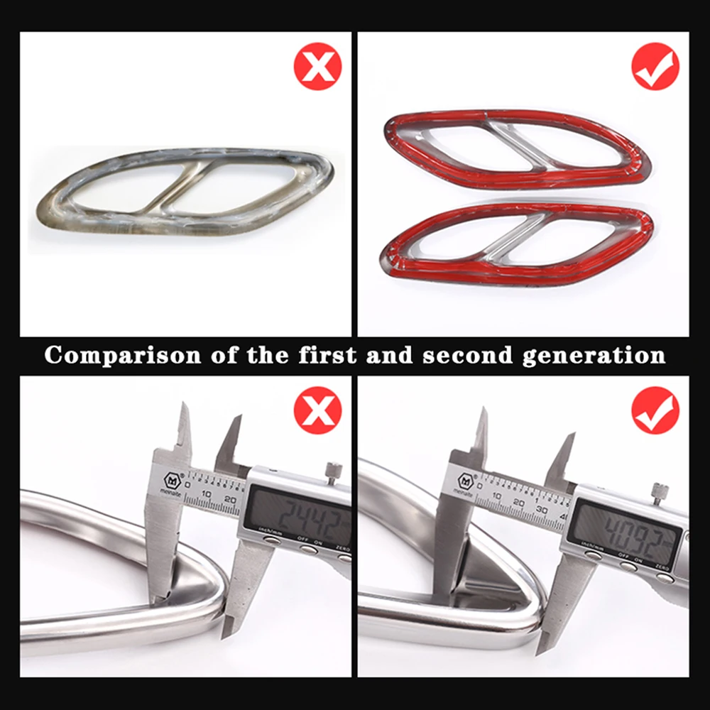 Изделие: глушитель выхлопной трубы совместимые транспортные средства: для W204 W205 W212 W213 W176 W222 X253 GLC GLA универсальный цвет: серебристый и черный Упаковка: 2 шт. в комплекте установка: 3 м лента, легкая установка Материал: сделано из высококачественной нержавеющей стали с помощью оригинального завода ISO9001, признанного миллионами клиентов