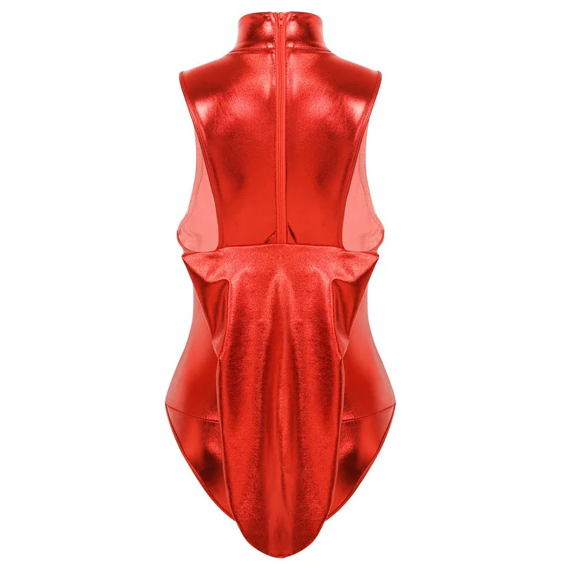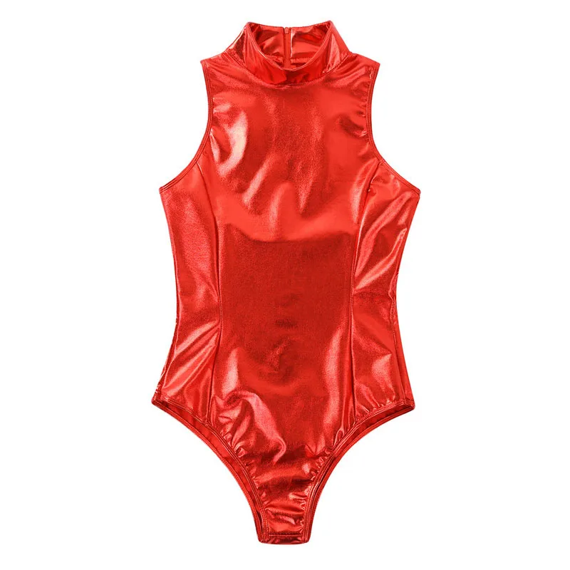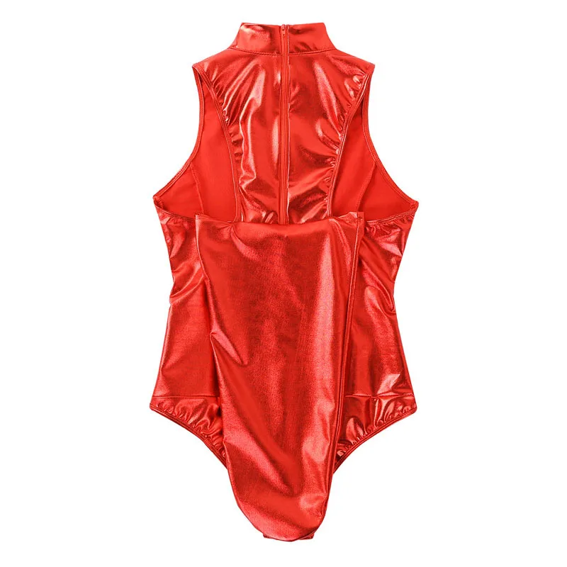 Женское нижнее белье с блестящим металлическим трико, застежка-молния сзади.