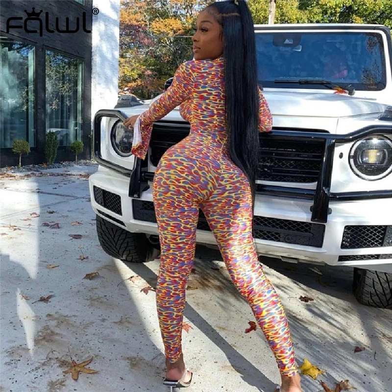 FQLWL уличная одежда с принтом, сексуальный Облегающий комбинезон, женские комбинезоны с длинным рукавом, обтягивающие цельные женские комбинезоны, женский комбинезон s