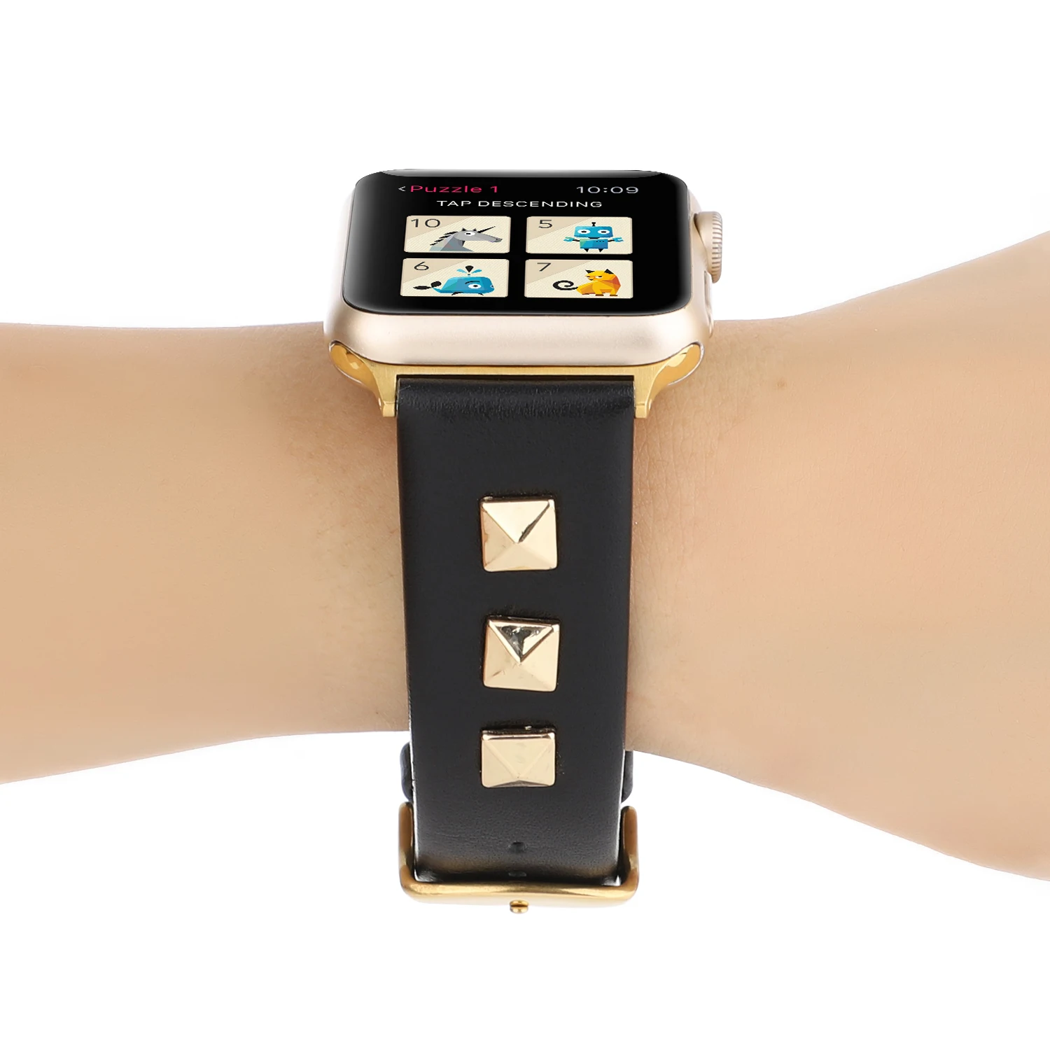 Заклепки Стиль спортивный бесшовный кожаный ремешок для наручных часов Apple watch, версии 40/44 мм для мужчин/женщин обручальные кольца, аксессуары для наручных часов iwatch серии 4, версия 1, 2, 3, ремешок 38/42 мм