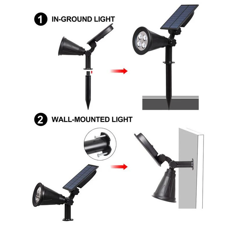 Прожекторы, Holan 4-светодиодный солнечный ландшафтный свет 180 ° Регулируемый