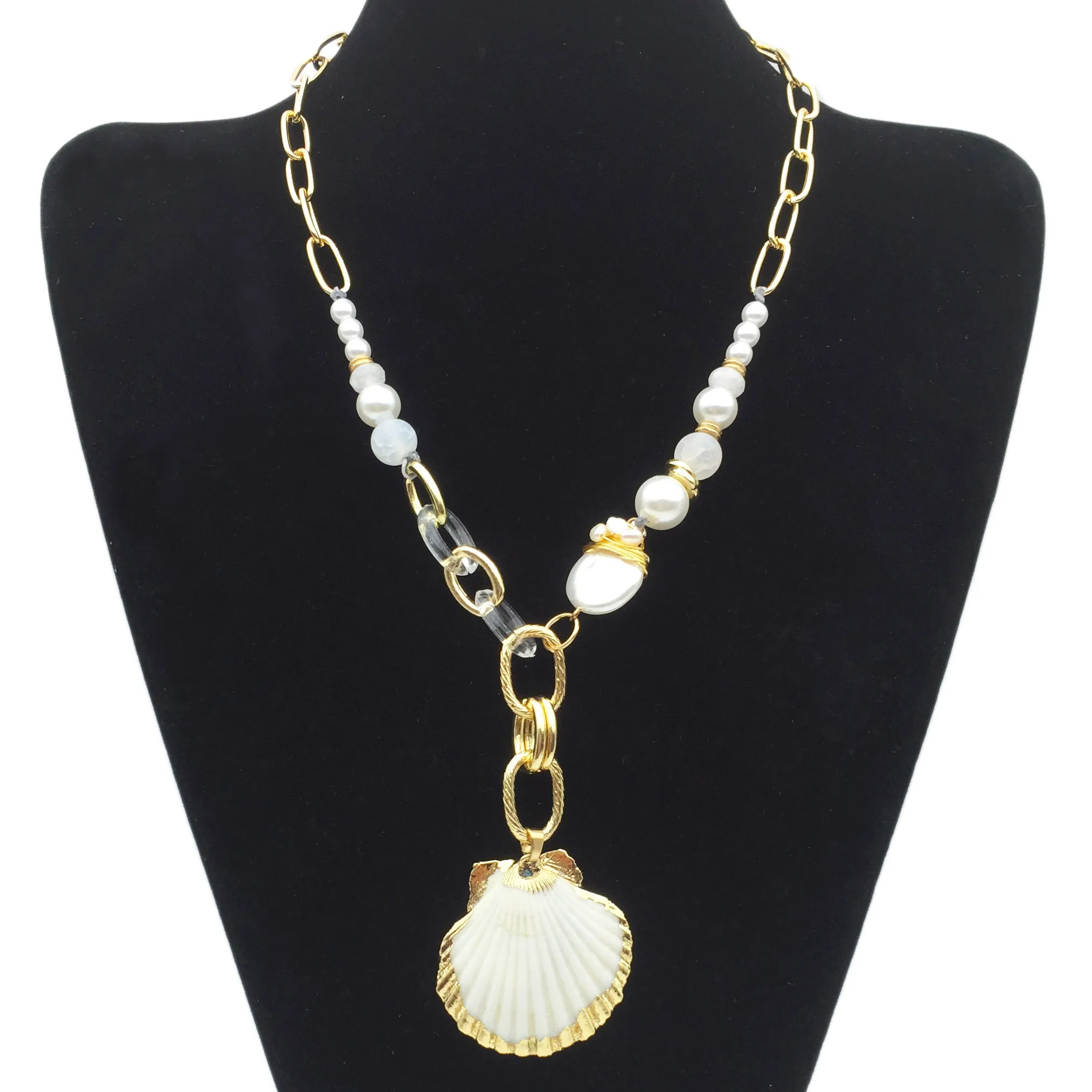 Новинка, подвеска в морском стиле, элегантный Природный гребешок, моллюск, пляж, Русалка, женский свитер, цепочка, ожерелье, Пресноводный Жемчуг, Морская раковина, ювелирное изделие