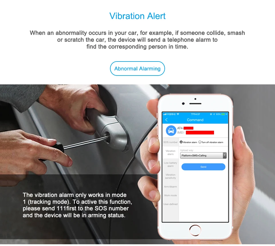 * WCDMA и GSM Используйте сеть 3G (отличное покрытие, не беспокойтесь 2G) * Слушайте Слушайте окружающую среду, отправив текстовое сообщение * Водонепроницаемость IPX5 Водостойкий корпус для обеспечения стабильной работы в жестких условиях * Аккумулятор 10000 мАч Литий-ионный аккумулятор высокой емкости обеспечивает достаточный источник питания * Интеллектуальное управление питанием Уменьшает неэффективное энергопотребление, когда устройство остается без работы * Сильный магнит Прочная Магнитная крышка, позволяющая гибкое крепление на транспортные средства или активы * Оповещение о вскрытии Как только устройство будет разобрано, вы немедленно получите информацию * Сигнализация гео-забора Сигнализация geo-fence работает только в режиме отслеживания, когда цель входит/существует заданная область geo-fence, устройство отправит сигнал тревоги на заданные номера SOS. * Вибрационная сигнализация Устройство отправит вам информацию о сигнале, как только кто-то шокирует его в состоянии руки * Отслеживается: SMS, APP, Web Отчеты о местоположении в режиме реального времени через различные интерфейсы
