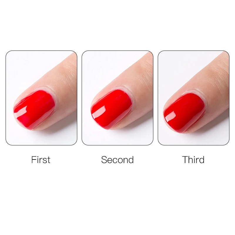 Шаг 4. Нанесите первый слой цветного гель-лака непосредственно, закрепите УФ-лампой в течение 2 минут или закрепите светодиодной лампой в течение 60 секунд.