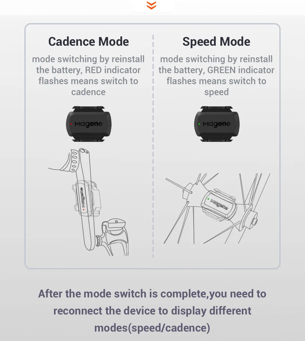 Название продукта: Датчик Каденции и скорости двойного режима Бренд: Magene Модель: S3 + Беспроводное подключение: Bluetooth 4,0/ANT + Размер продукта: 85*29,8*38,3 мм Чистая Вес: 8,8 г (с аккумулятором) Водонепроницаемость: IP66 Тип датчика: геомагнитный датчик Рабочая температура: -20 ~ + 50 ℃ Батарея: CR2032 Срок службы батареи: 500 часов