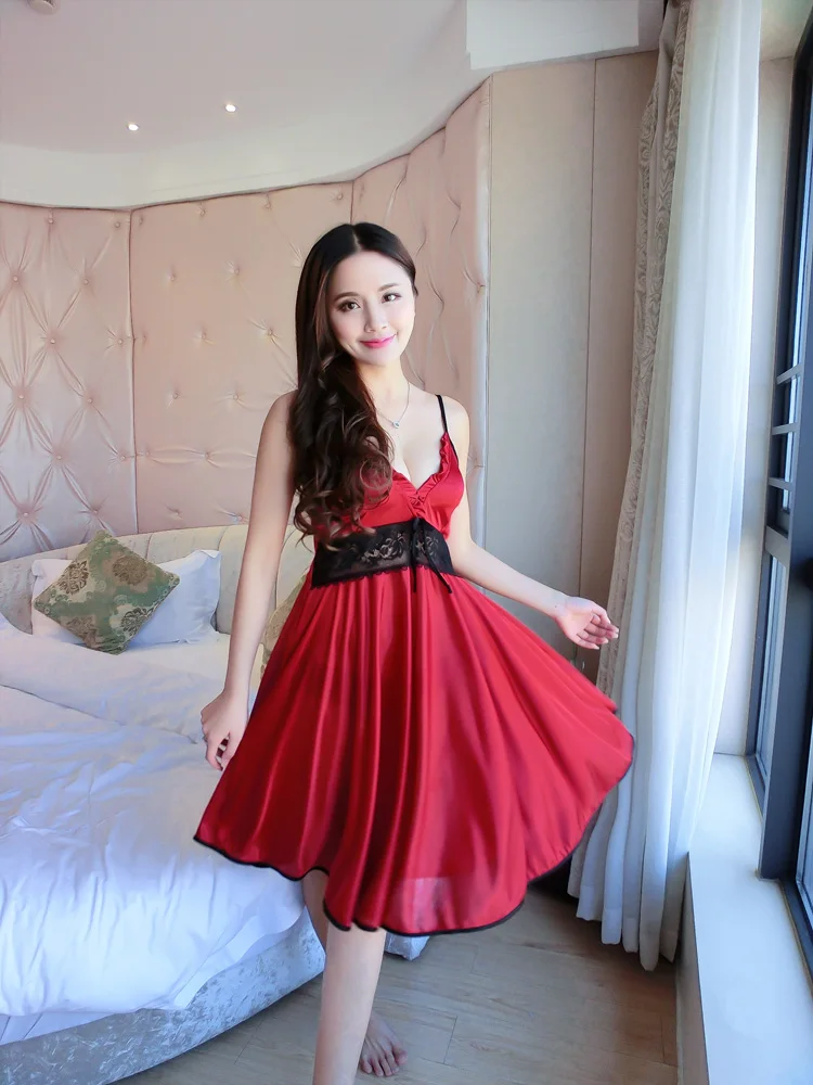 Сексуальное Ночное платье женское кружевное шелковое ночная рубашка