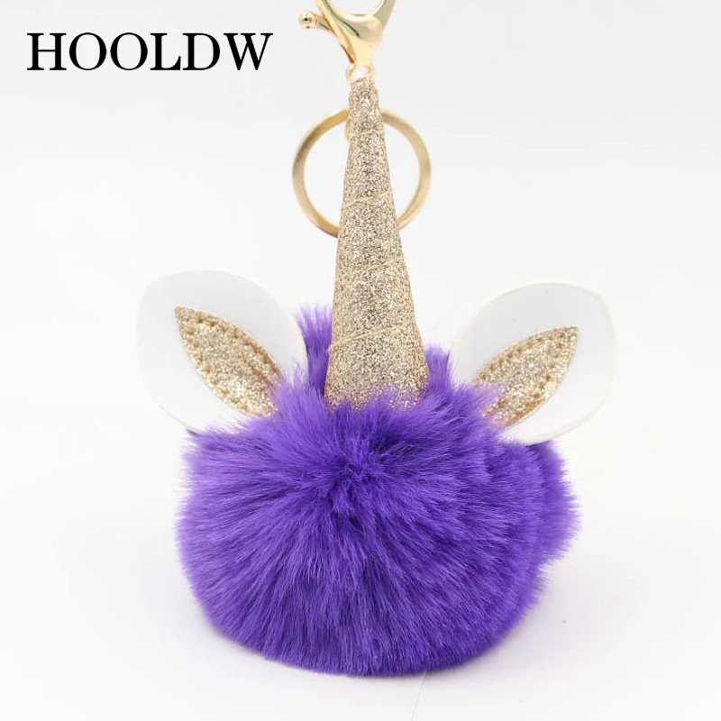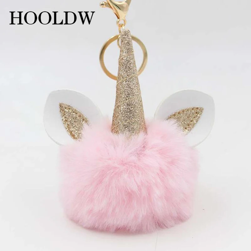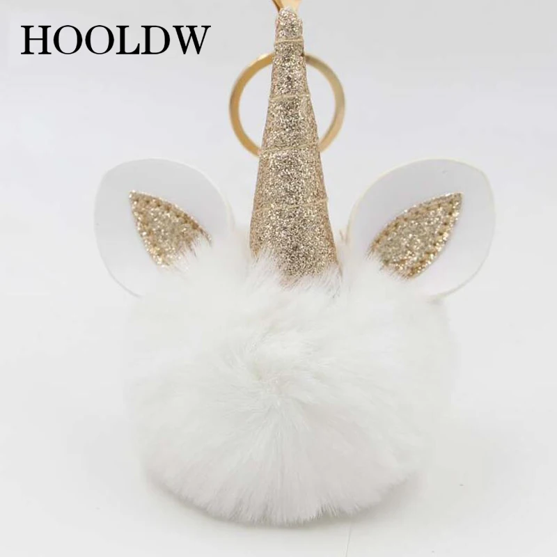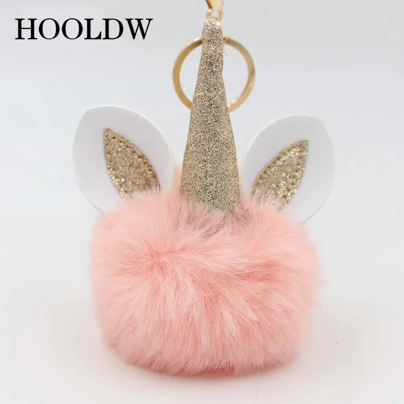 HOOLDW пушистый помпон, брелок с единорогом, искусственный мех кролика, помпоны, шар, брелок с единорогом, женская сумка, автомобильный брелок