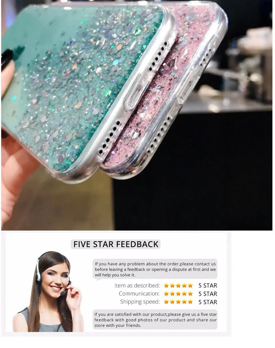 Пункты продажи: Особенность: роскошный блестящий яркий прозрачный чехол для телефона с блестками Совместимость: для iphone XS MAX XR X 8 7 6 6S Plus Упаковочный лист: 1 * чехол для телефона Обслуживание: 1. Дорогие друзья, пожалуйста, напишите свое полное имя и почтовый индекс в заказе в соответствии с политикой страны, спасибо! 2. Оптовые цены: 2% скидка (2 шт. или более), и если вы покупаете 20 шт. или более, будет 5% скидка, попробуйте связаться со мной, наилучшие пожелания!