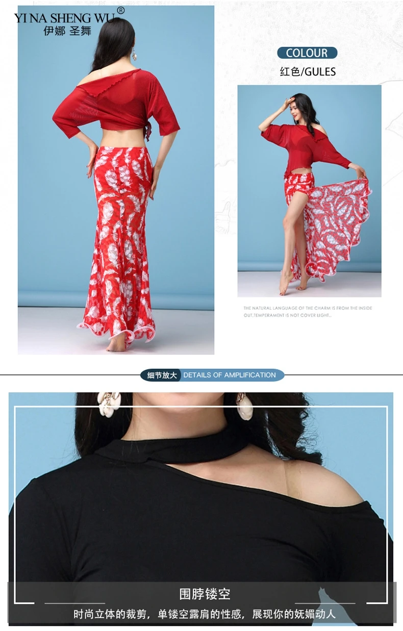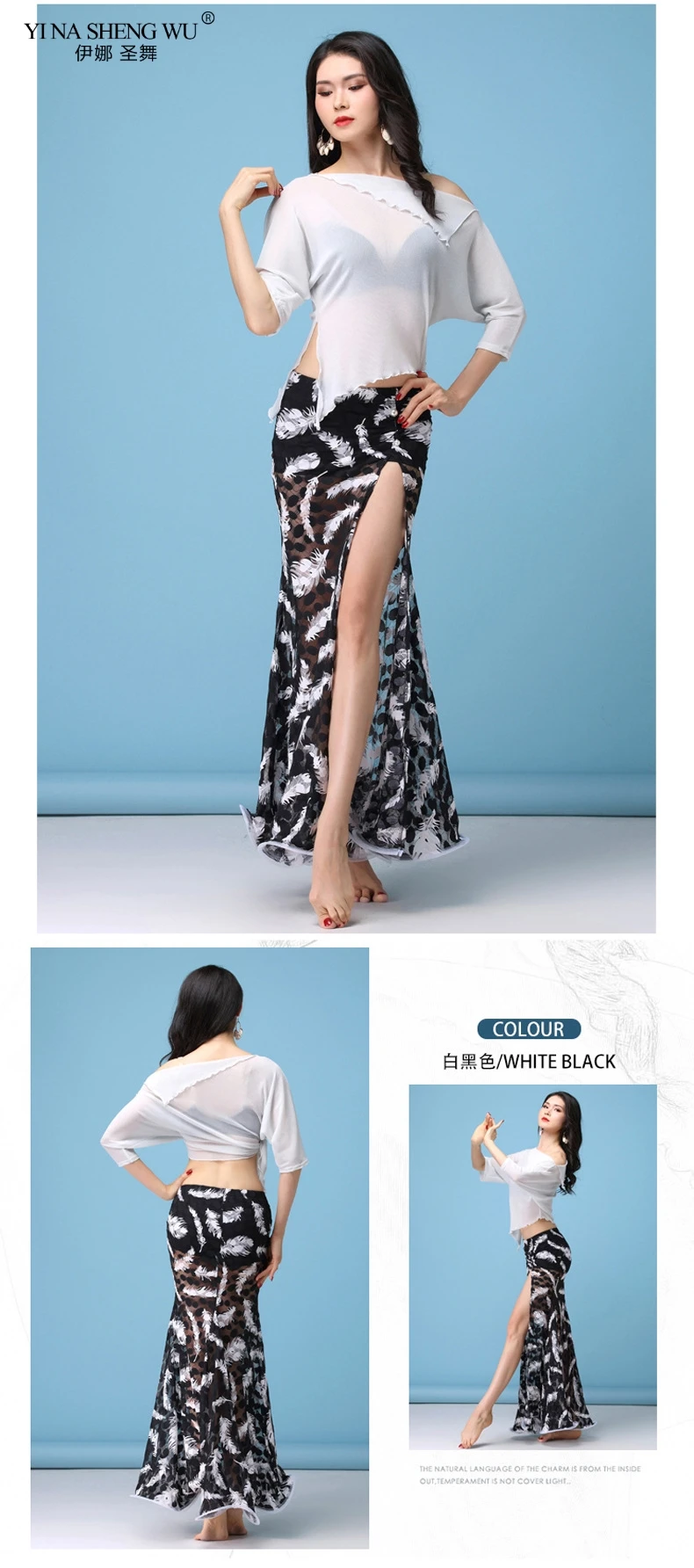 Женский костюм для танцев из серебристой и кружевной ткани, комплект из 2 предметов, Одежда для танцев, сексуальная Длинная юбка + Топ, комплект для соревнований, Одежда для танцев