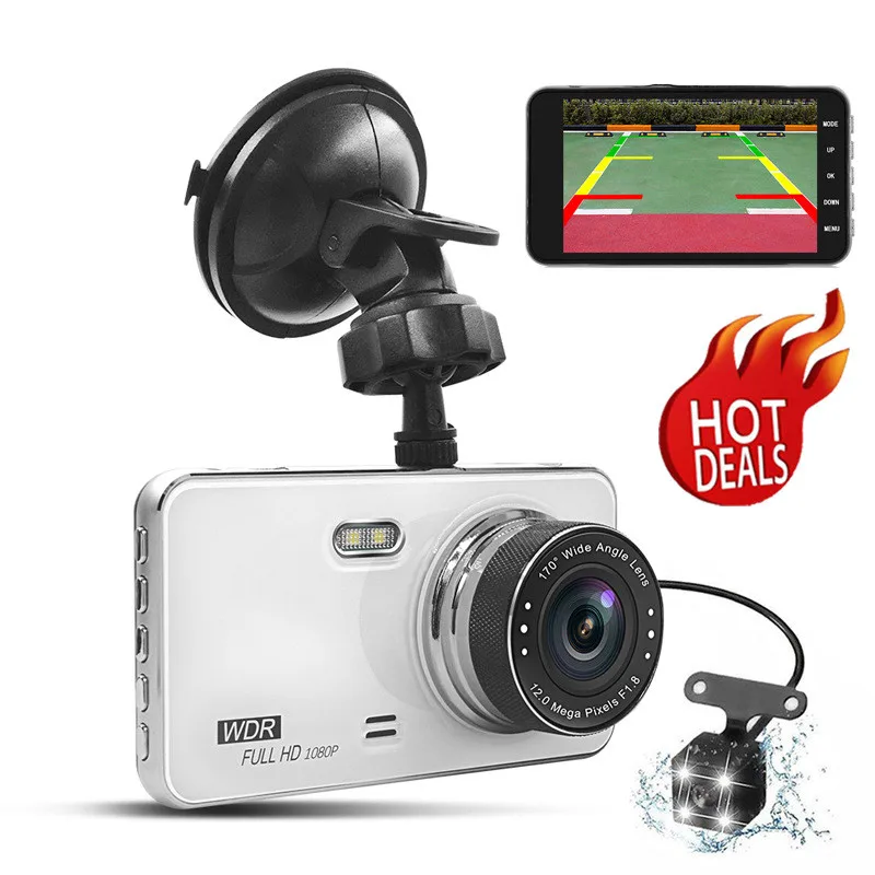 Видеорегистратор Maiyue star 2020, 4 дюйма, HD, с ночным видением, серебристо-белый, двойной объектив, фронтальная и задняя, двойная запись, камера заднего вида