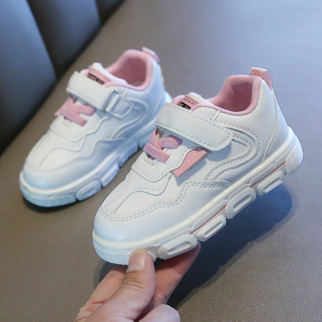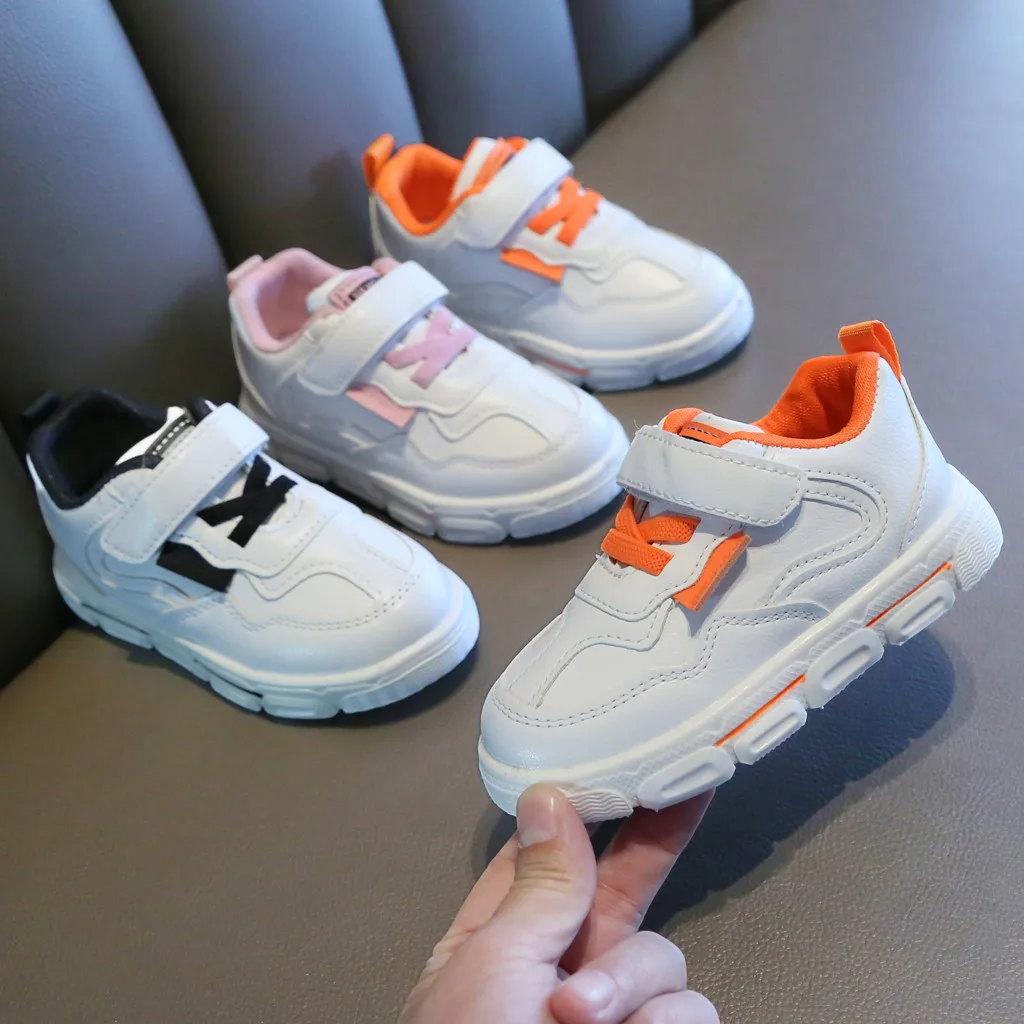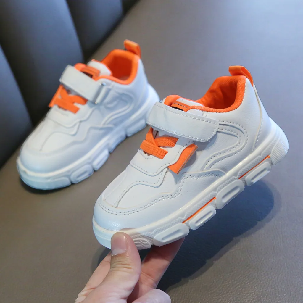 Повседневные модные спортивные белые кроссовки для маленьких мальчиков и девочек