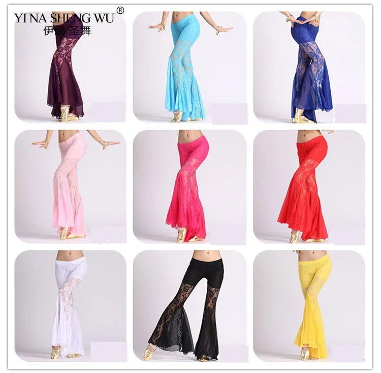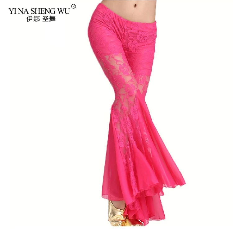 Женский костюм для танца живота, кружевные штаны, костюм-шаровары из хлопка с кристаллами, черный, красный, желтый, синий цвет, одежда для танца живота, штаны для женщин
