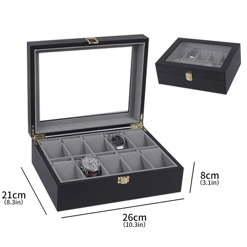 Деревянный чехол для часов с 6/10/12 слотами, чехол для часов, органайзер для хранения, большой стеклянный чехол для хранения Описание: Технические характеристики: Посылка включает в себя: Примечания: