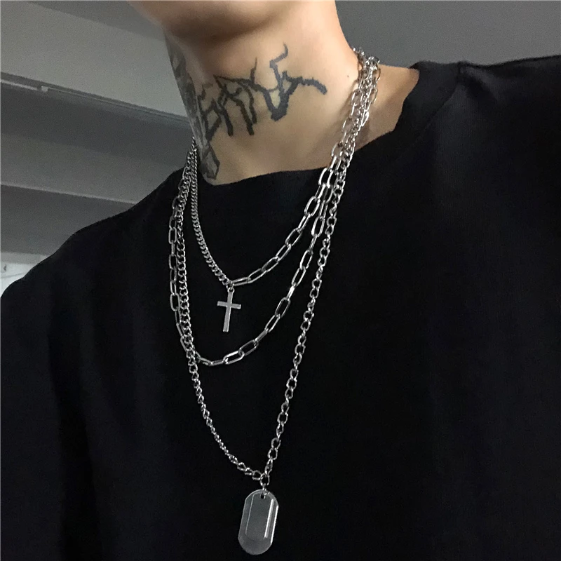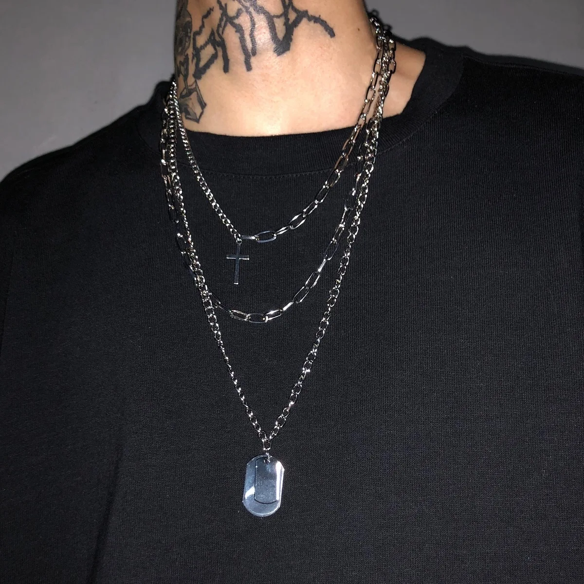 Мужская и женская цепочка из нержавеющей стали, многослойное ожерелье с кулоном геометрической формы в стиле рок, хип-хоп
