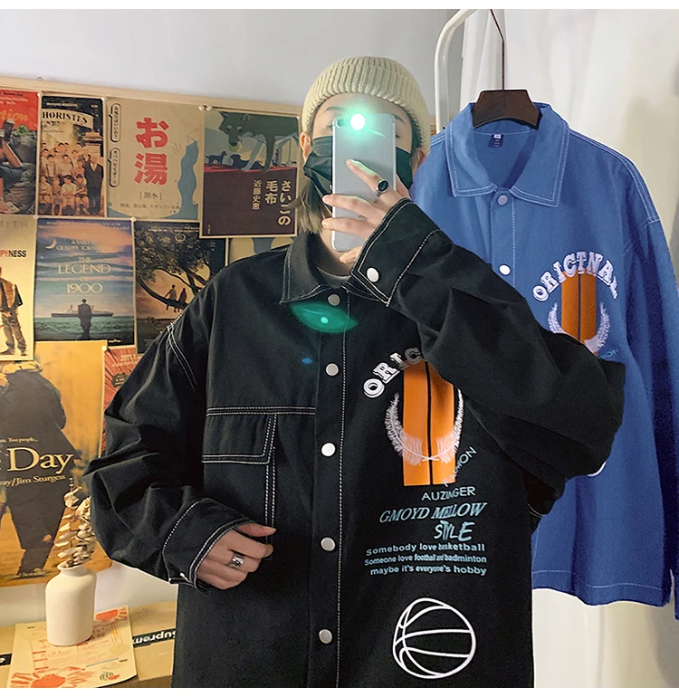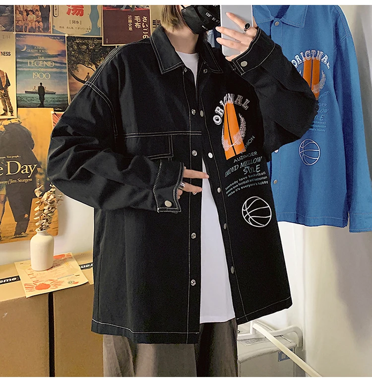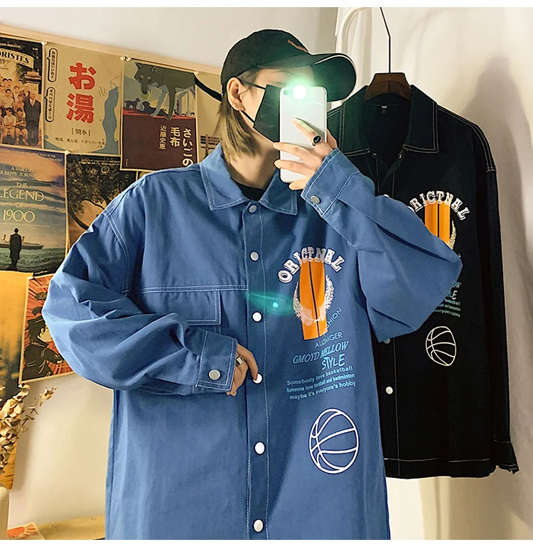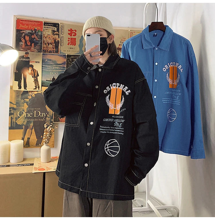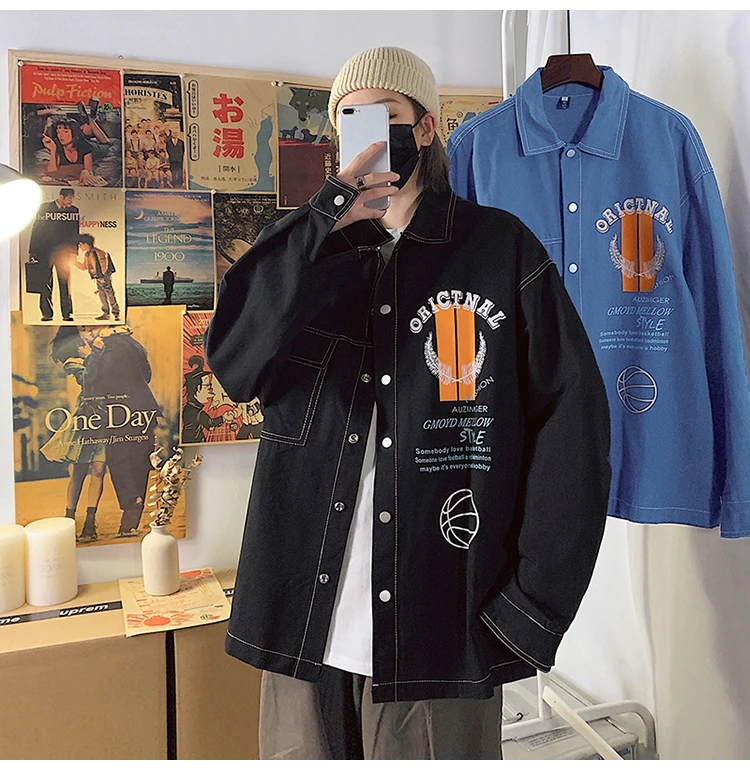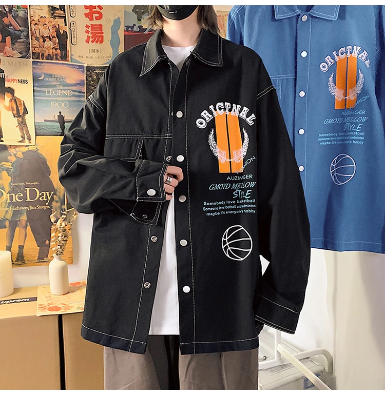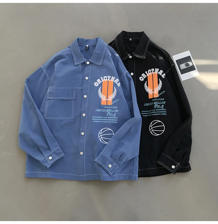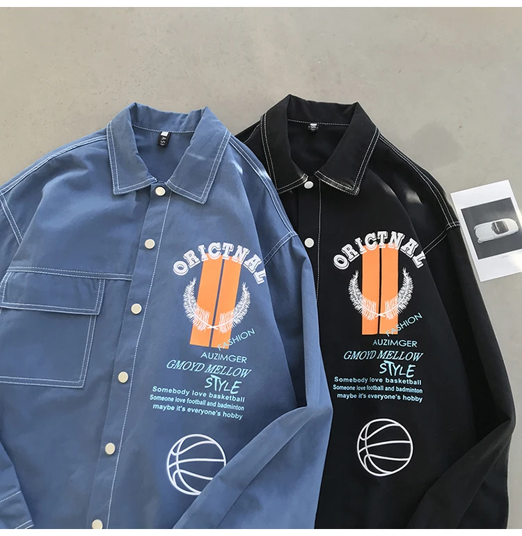 Мужская рубашка с длинным рукавом Повседневная отложным воротником и принтом