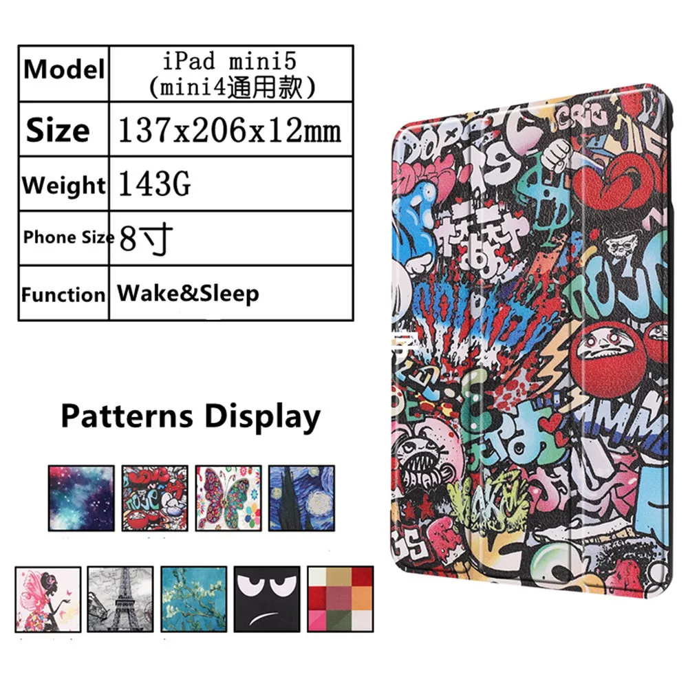 Новый окрашенный трехслойный кожаный чехол-книжка с подставкой для ipad Mini 4 2019, чехол для планшета Wake & Sleep для ipad Mini 4 в наличии