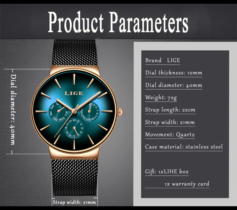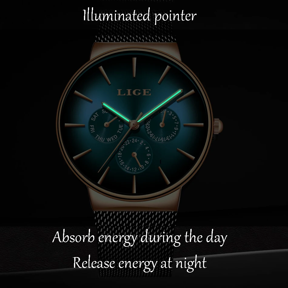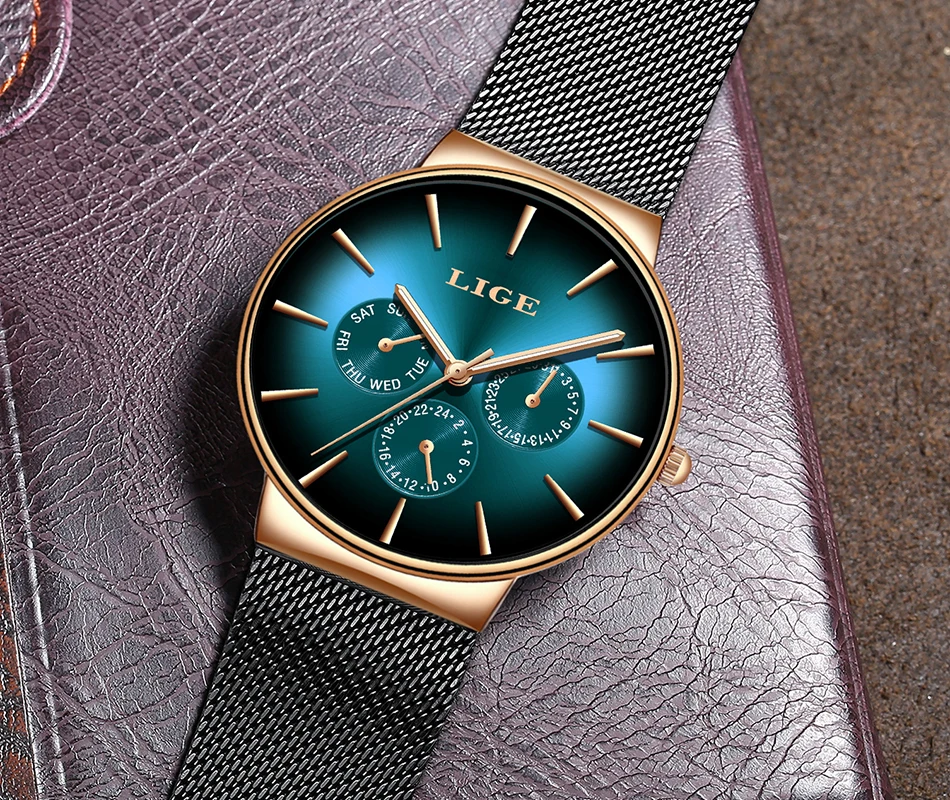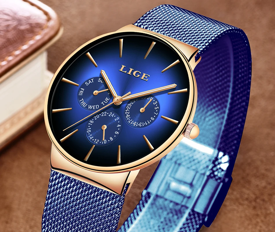 Часы наручные LIGE мужские с сетчатым ремешком креативные брендовые люксовые