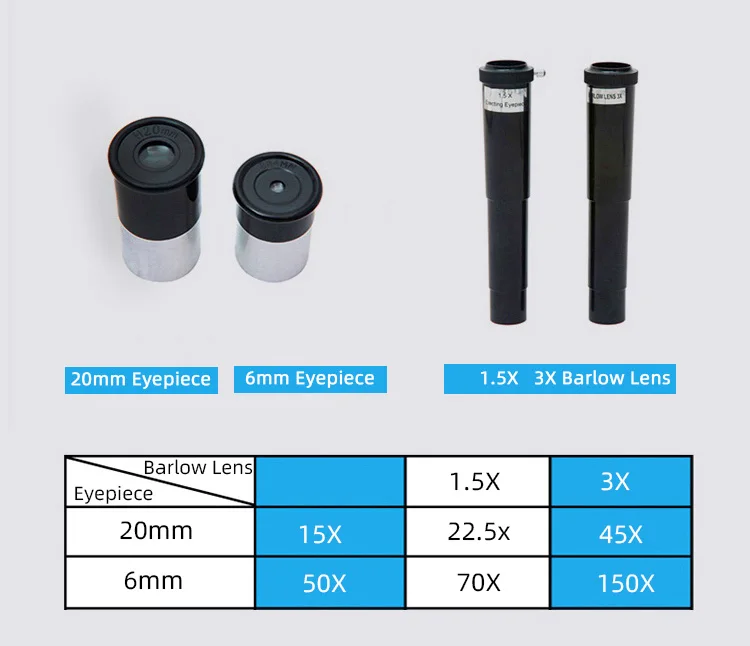Особенности: Телескопический рефрактор 1,70 мм (2,75 дюйма) обеспечивает яркие изображения, которые идеально подходят для просмотра как земельных, так и небесных предметов 2. Совершенно новые 2 группы из 2 частей, обычный Ахроматический рефракторный астрономический телескоп 3. Телескоп поставляется в комплекте со всем, что вам нужно, чтобы рассмотреть чудеса ночного неба в первый раз 4. Все стеклянные оптические элементы с покрытием для четких и четких изображений 5. 90-deg зенитное зеркало так, что ваше мнение-это правильно ориентированное 6. Предварительно собранный алюминиевый полноразмерный фотографический штатив обеспечивает стабильную платформу 7. Быстрая и простая установка без инструментов 8. Телескоп и штатив сидят внутри, специальная посылка для легкого путешествия и хранения 9. Поставляется с 2 окулярами для просмотра широкого спектра предметов (Луна, планеты или земля), и 3х Барлоу, который удваивает увеличение каждого окуляра Технические характеристики: 1. Увеличение: 150x 2. Диаметр объектива: 70 мм (2,75 дюйма) 4. Окуляры: k20 мм, K6 мм 5. Линза Барлоу: 3x 6. Материал штатива: алюминиевый сплав
