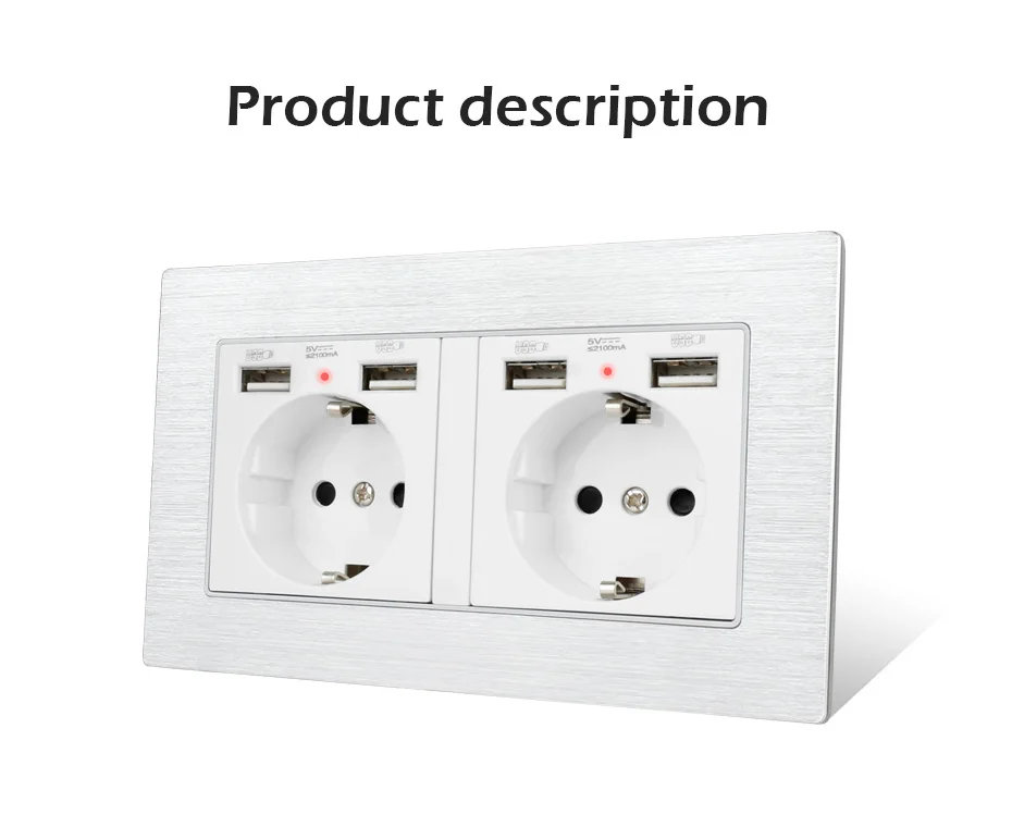 Esooli черная алюминиевая панель настенная розетка стандарта ЕС с 4 USB зарядными портами для мобильных телефонов, скрытый мягкий светодиодный индикатор