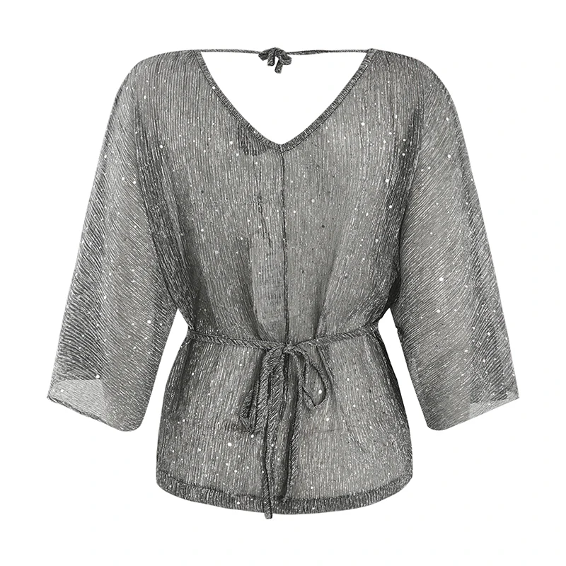 Kissmilk размера плюс новая мода сексуальный топ с v-образным вырезом и блестками