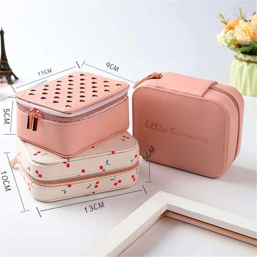 Экономичный дизайн-этот маленький, но вместительный чехол с двойным слоем, обеспечивает шпильку, крючки для ожерелья, кольцевые пазы и регулируемое пространство для хранения, можно держать большую часть ваших ювелирных изделий и косметики