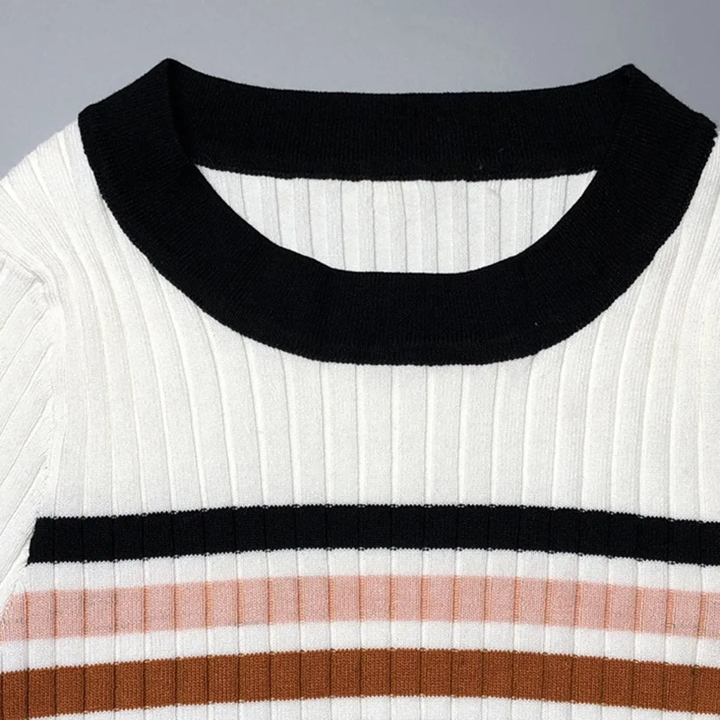Материал легкий, ультра мягкий, может держать вас в тепле, оставаясь coolMulticolor Полосатый трикотажные топы, является модным и красивым.