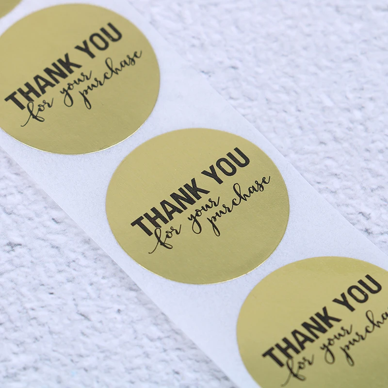 Напечатано на высококачественной золотой фольге с надписью «спасибо за ваш заказ», легко читаемой