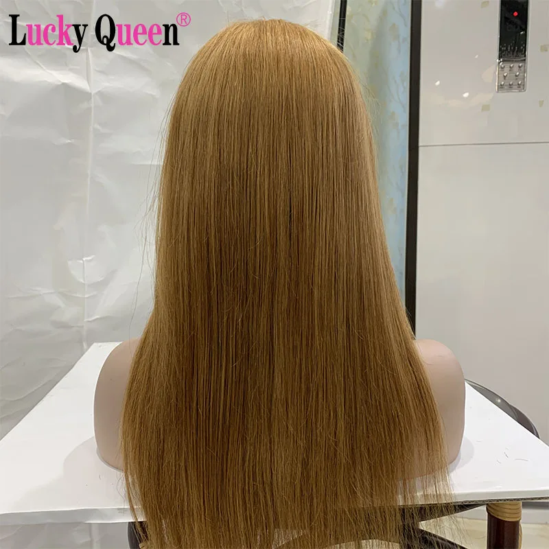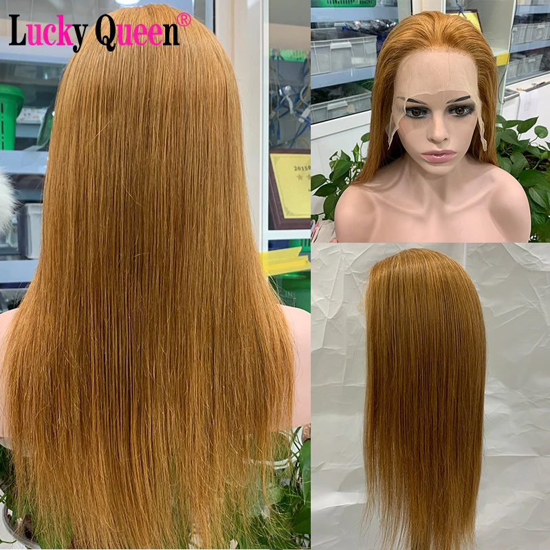 Эффектом деграде (переход от темного к цвета медовый блонд, прямые волосы 13x4 фронта шнурка человеческих волос парики для чернокожих женщин 1B/27 бразильские парики предварительно вырезанные 150% плотность Lucky Queen Hair парики