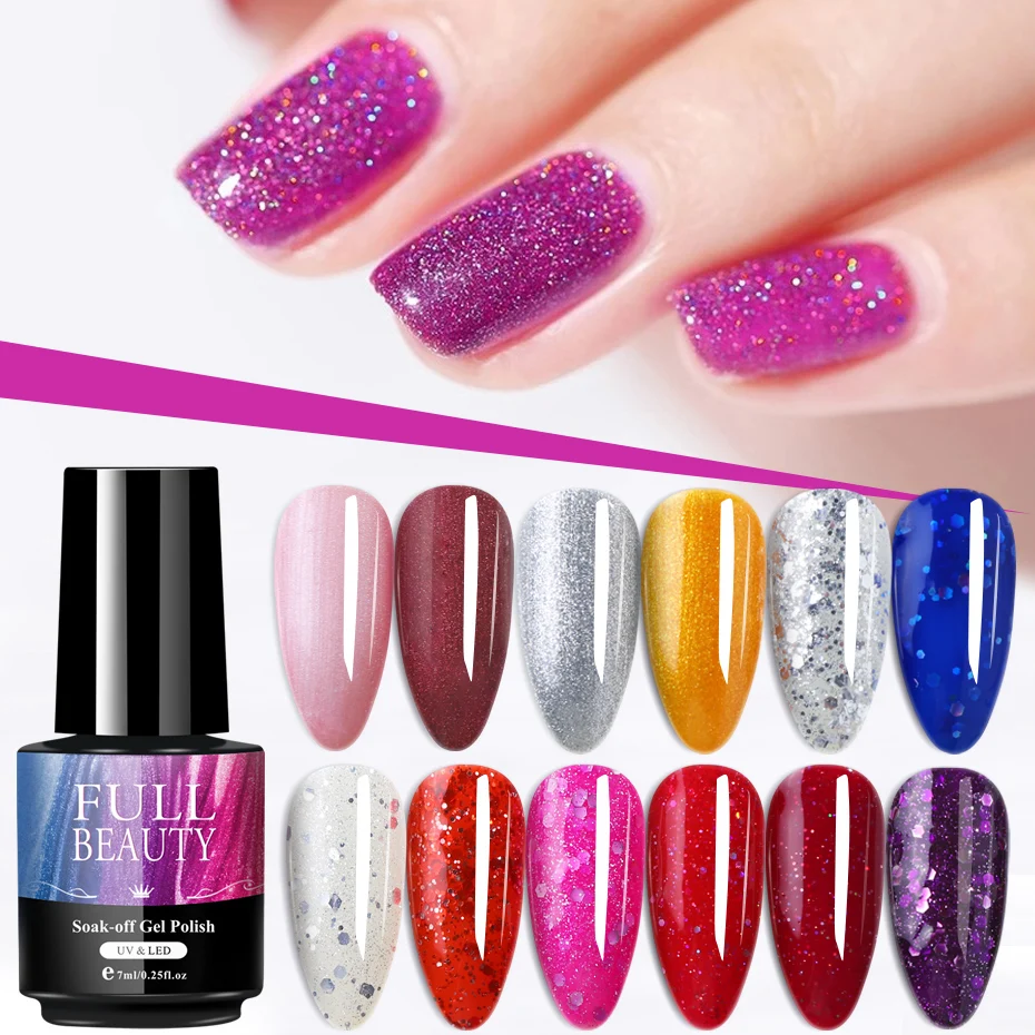 Название бренда: 7 мл блестки Гель-лак для ногтей голографический блестящий блеск золото Полупостоянный УФ LED Vernis замочить от лака базовое верхнее покрытие